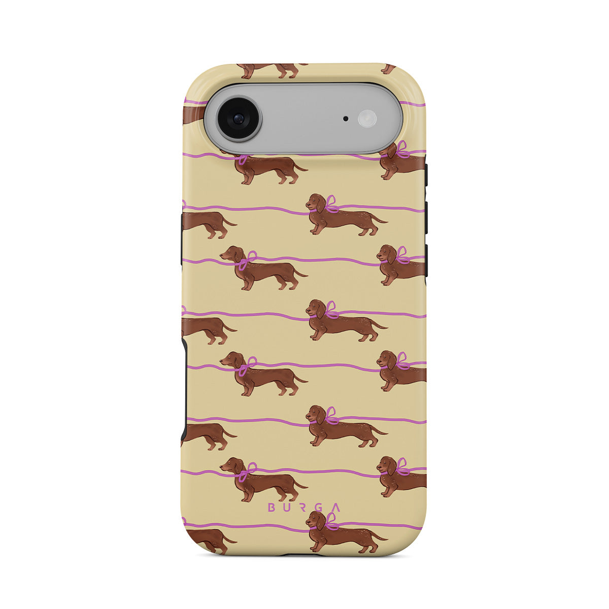 This iPhone Air phone case design doesn’t believe in time, only vibes. It features sassy sausage dogs with bows who, like you, are running 15 minutes behind—and blaming Mercury.