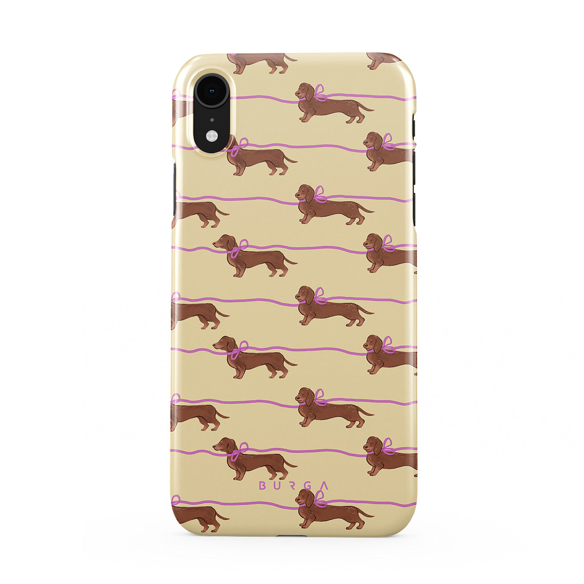 This iPhone XR phone case design doesn’t believe in time, only vibes. It features sassy sausage dogs with bows who, like you, are running 15 minutes behind—and blaming Mercury.