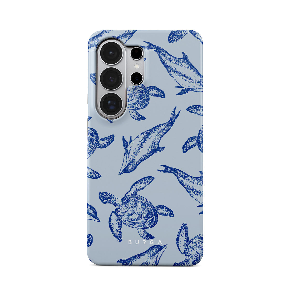 A beautiful design featuring lively turtles and dolphins playfully dancing in serene light blue water. Dive into the ocean's rhythm with our Aquatic Dance Samsung Galaxy S26 Ultra Case.