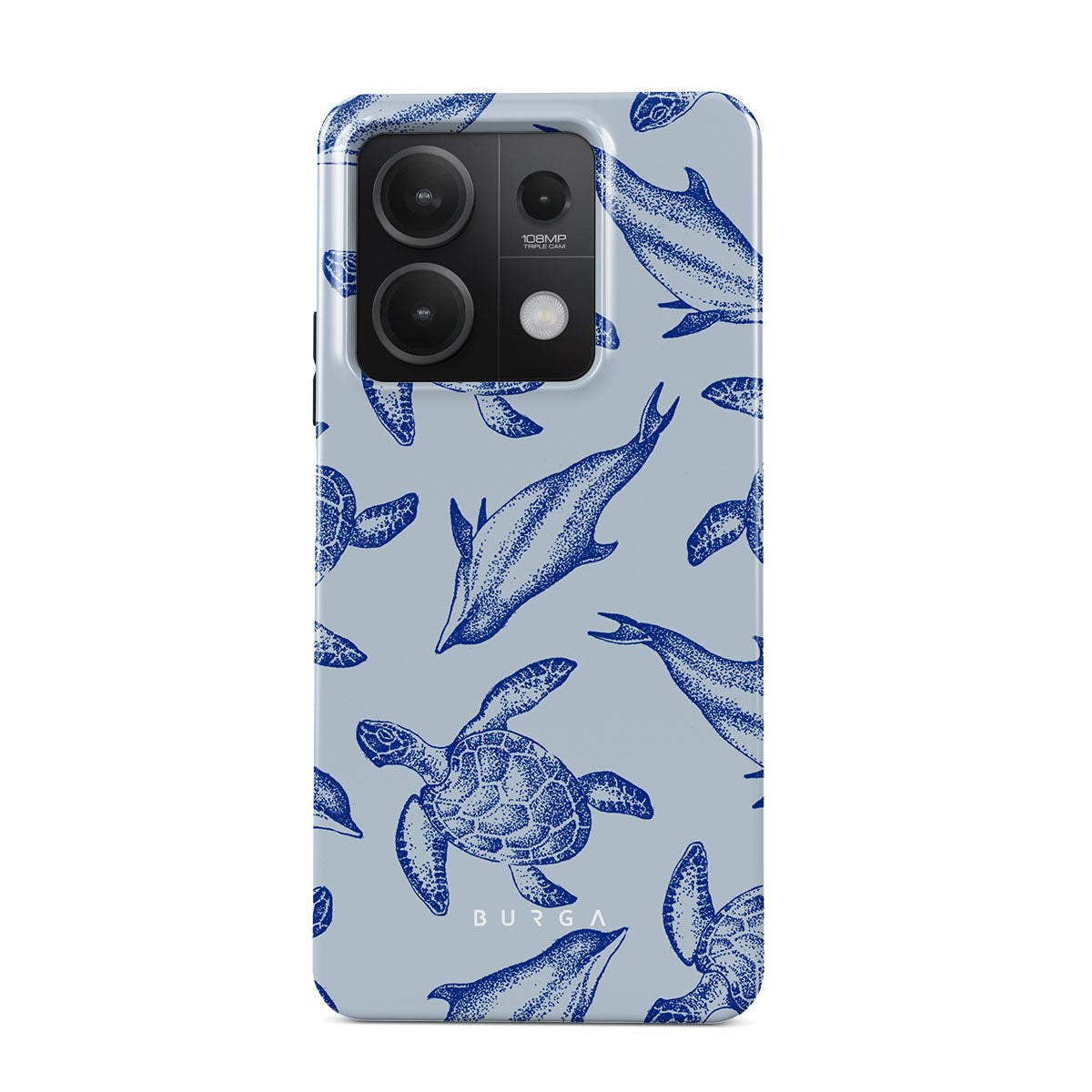 A beautiful design featuring lively turtles and dolphins playfully dancing in serene light blue water. Dive into the ocean's rhythm with our Aquatic Dance Xiaomi Redmi Note 13 5G case.