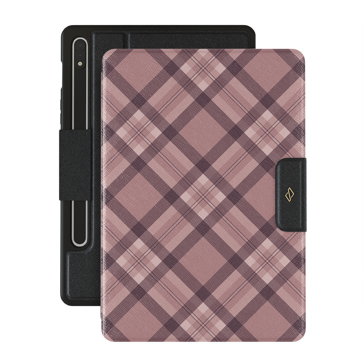 Made for those who hustle hard and look sharp. Our ASAP Samsung Galaxy Tab S10+ folio case design features a sleek rosé-gray background with diagonal plaid in soft grey and deep pink—mixing modern flair with understated elegance. For the pros who know that style and speed go hand-in-hand.