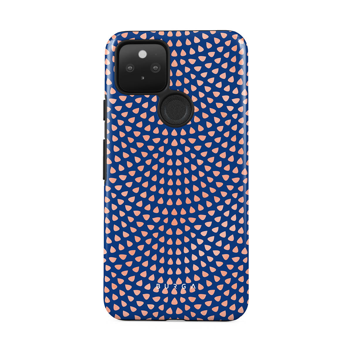 Rose gold teardrops meet a deep shade of blue in our Azure Waters Google Pixel 5 phone case and create the duo worth taking with you every evening out. Add a touch of strictness with the symmetrical teardrops pattern paving the way and keeping your phone out of harm's way with the case that is as protective as it is beautiful.