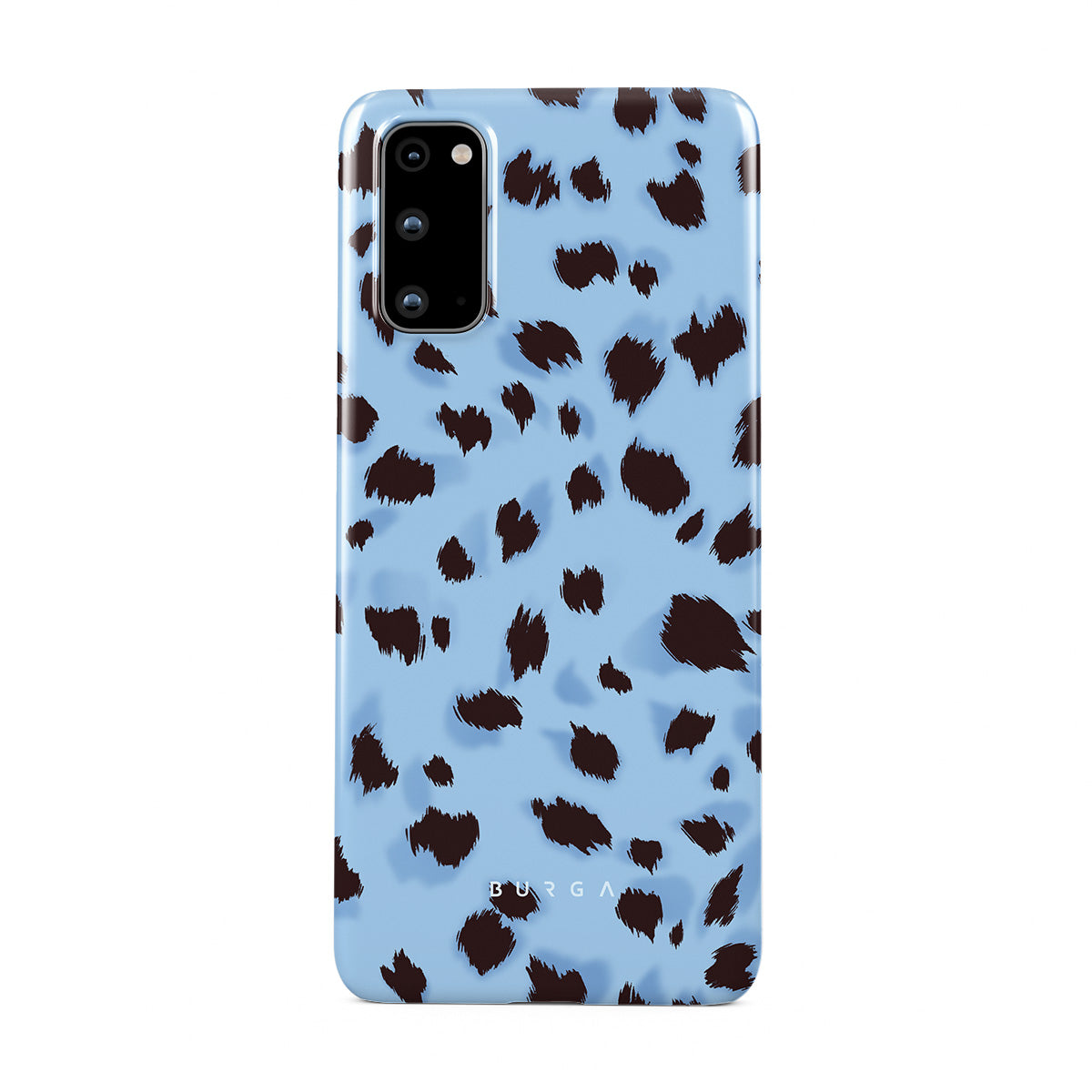 This design features: light blue background, animal print