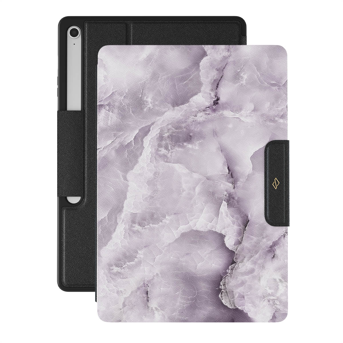 The gray violet-colored Black Currant Samsung Galaxy Tab S10+ FE folio case showcases a soft marble design that will add a touch of luxury to your style. The color itself represents the future and dreams, yet the nature of it offers a calming effect. Keep a piece of serenity in your hands.