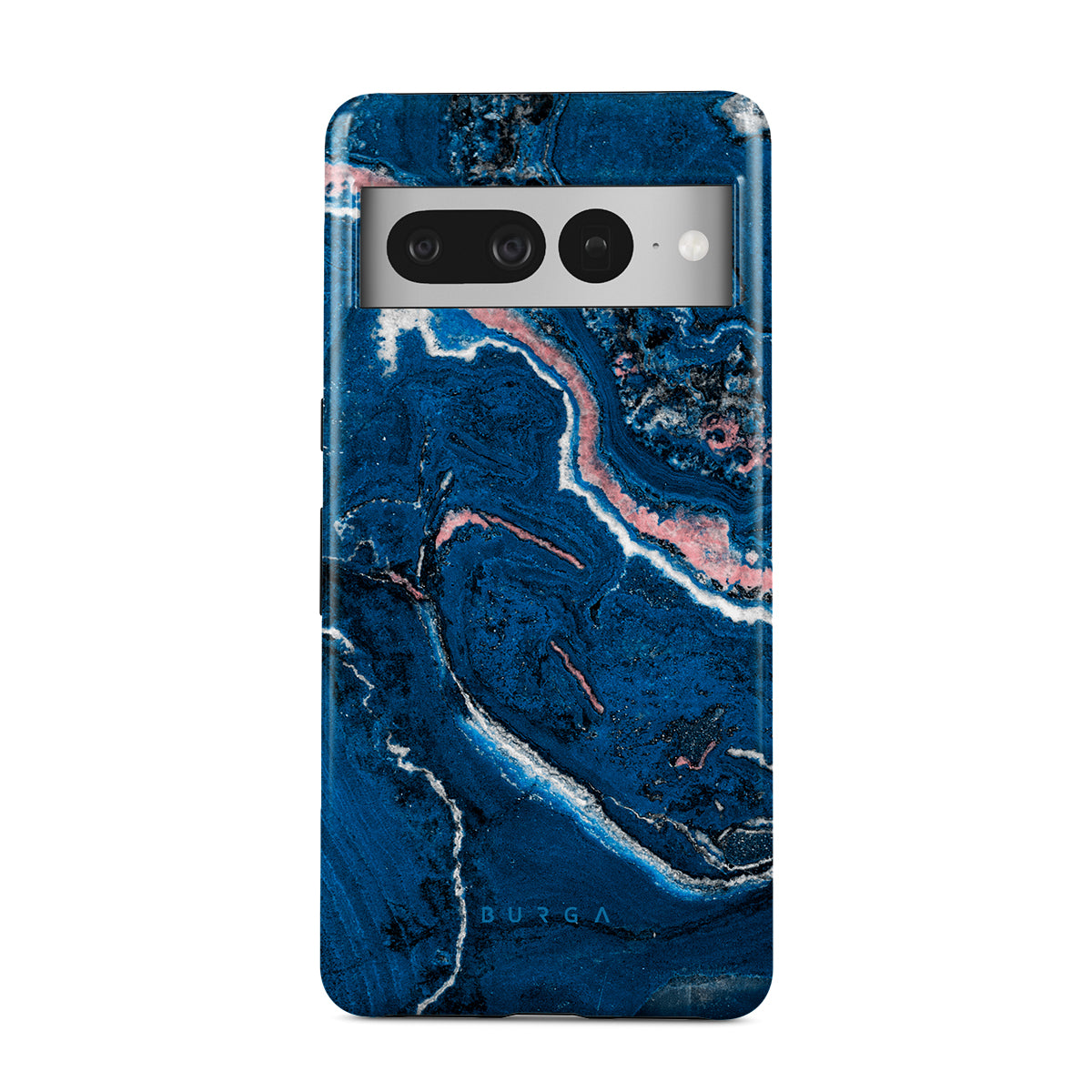 Electric indigo blue meets white, and pastel pink swirls in a unique marble pattern in our Blue Lagoon Google Pixel 7 Pro phone case. The modern take on a blue marble trend will look aesthetically pleasing on your device while offering durable protection from any falls.
