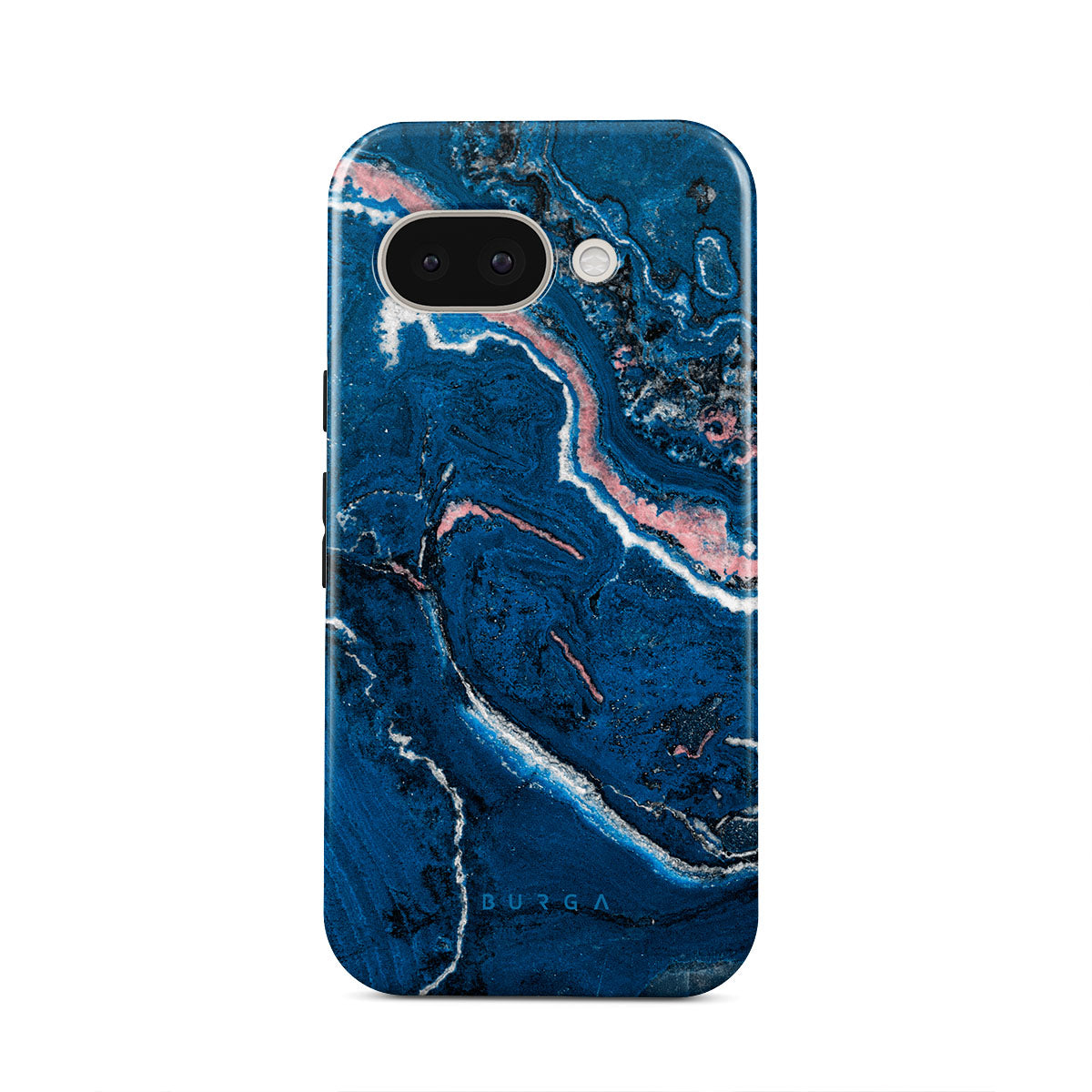 Electric indigo blue meets white, and pastel pink swirls in a unique marble pattern in our Blue Lagoon Google Pixel 9a phone case. The modern take on a blue marble trend will look aesthetically pleasing on your device while offering durable protection from any falls.