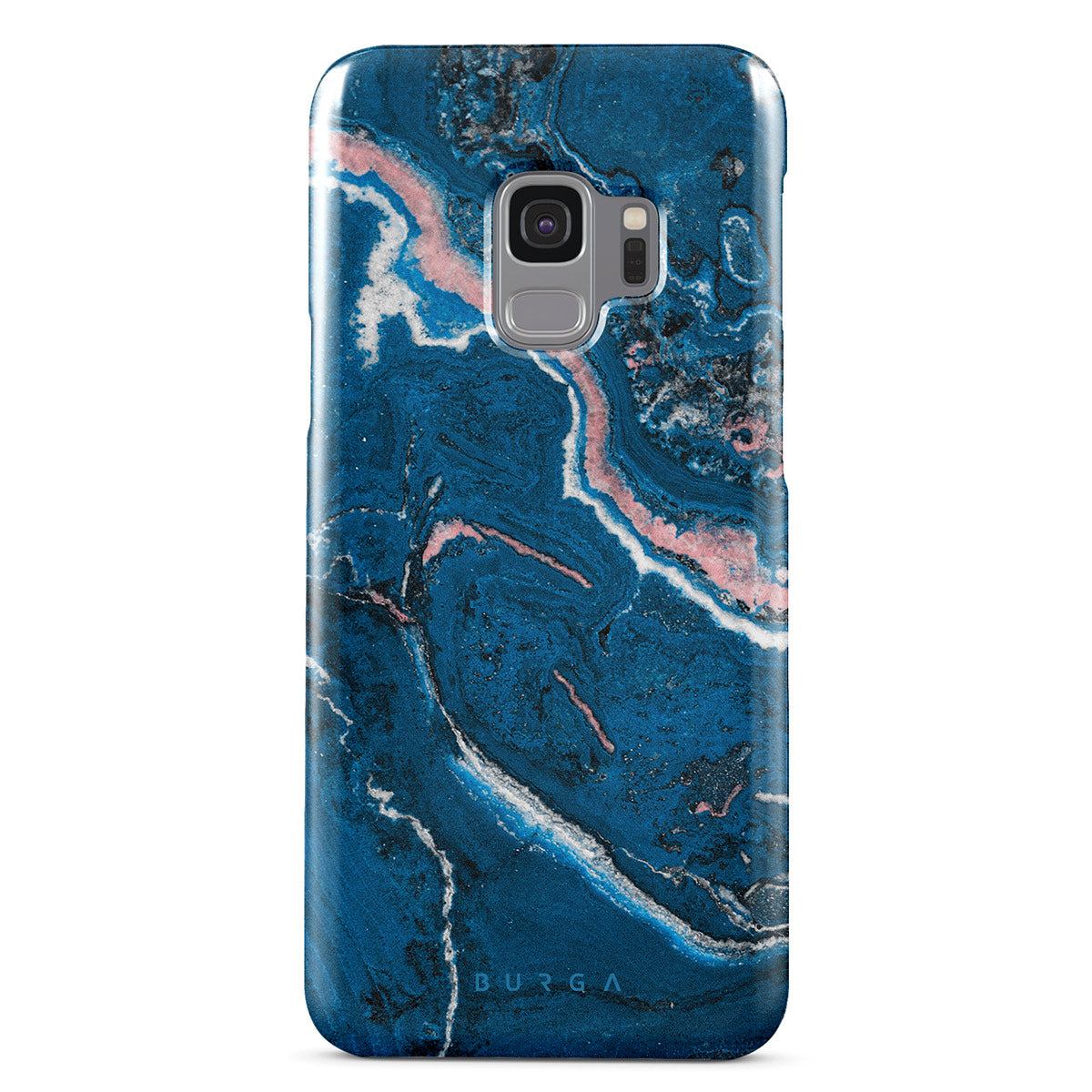Electric indigo blue meets white, and pastel pink swirls in a unique marble pattern in our Blue Lagoon Samsung Galaxy S9 phone case. The modern take on a blue marble trend will look aesthetically pleasing on your device while offering durable protection from any falls.