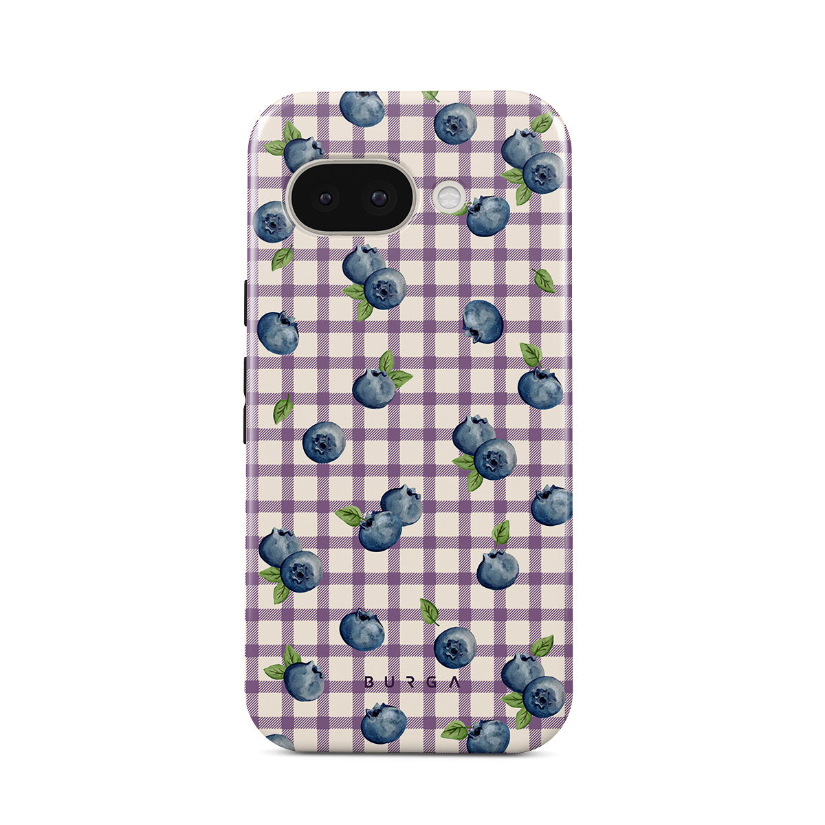 This design features: blueberries, gingham, checkered patterns, fruit illustrations