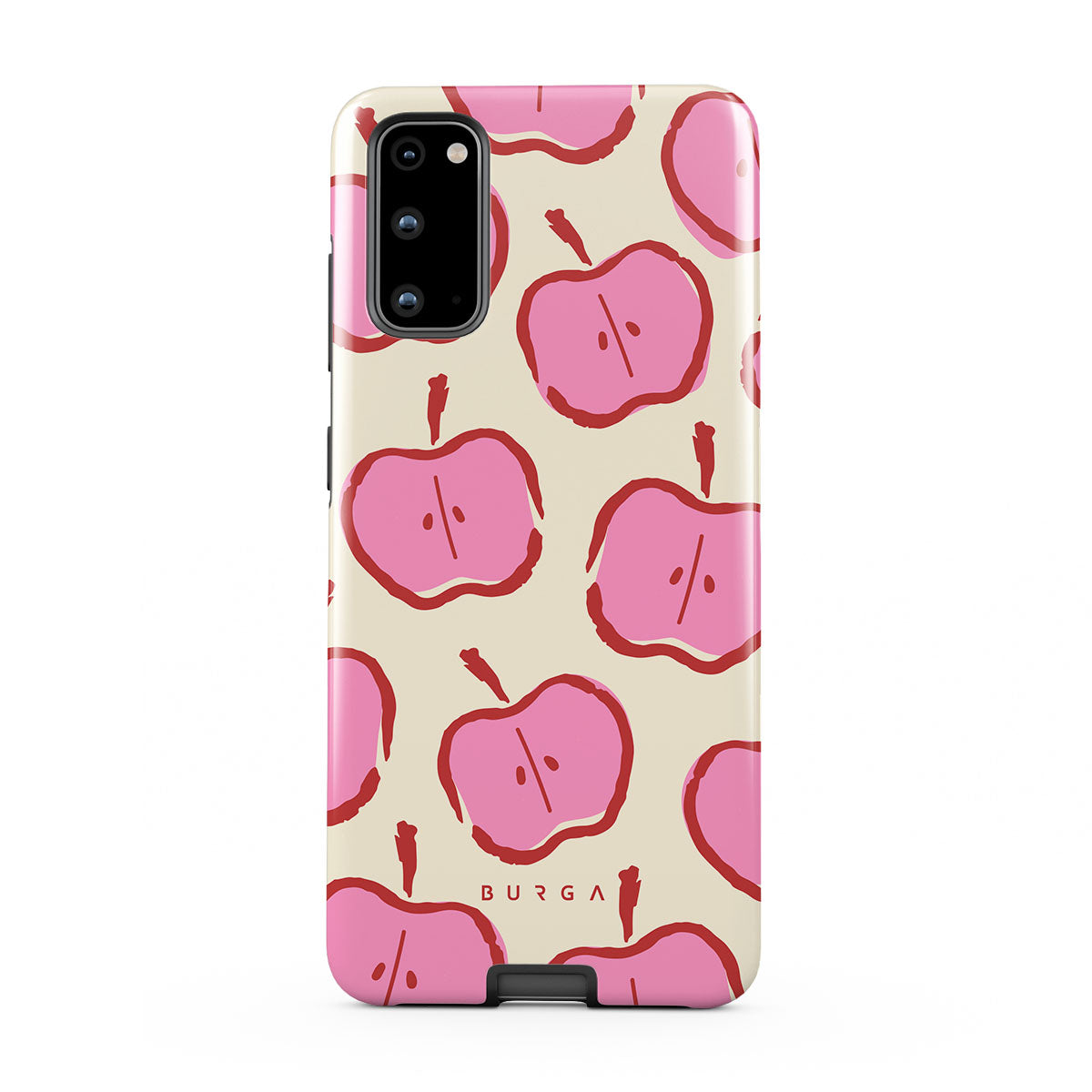 Our Bon Appétit Samsung Galaxy S20 FE 4G / 5G phone case design makes every day feel like a magical adventure filled with sweet surprises. The playful pink hues of the apples stand out brilliantly against the serene cream background, creating a captivating and enchanting visual.