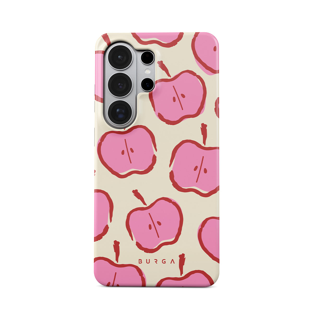 Our Bon Appétit Samsung Galaxy S26 Ultra phone case design makes every day feel like a magical adventure filled with sweet surprises. The playful pink hues of the apples stand out brilliantly against the serene cream background, creating a captivating and enchanting visual.