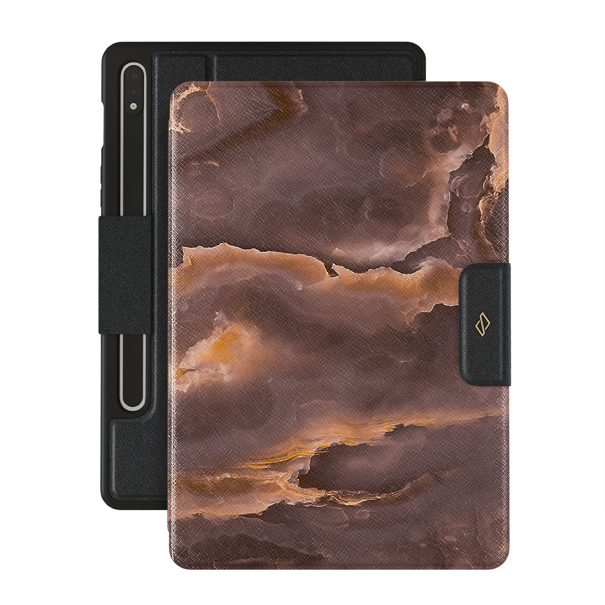 The bonfire starts to flicker – it's time to gather more wood. With a brown marble Samsung Galaxy Tab S9+ FE folio case design inspired by a bonfire flame, carry a feeling of content and excitement wherever you go. The protective case is needed in a hike, but a stylish accessory will match your aesthetic even on a lazy Sunday.