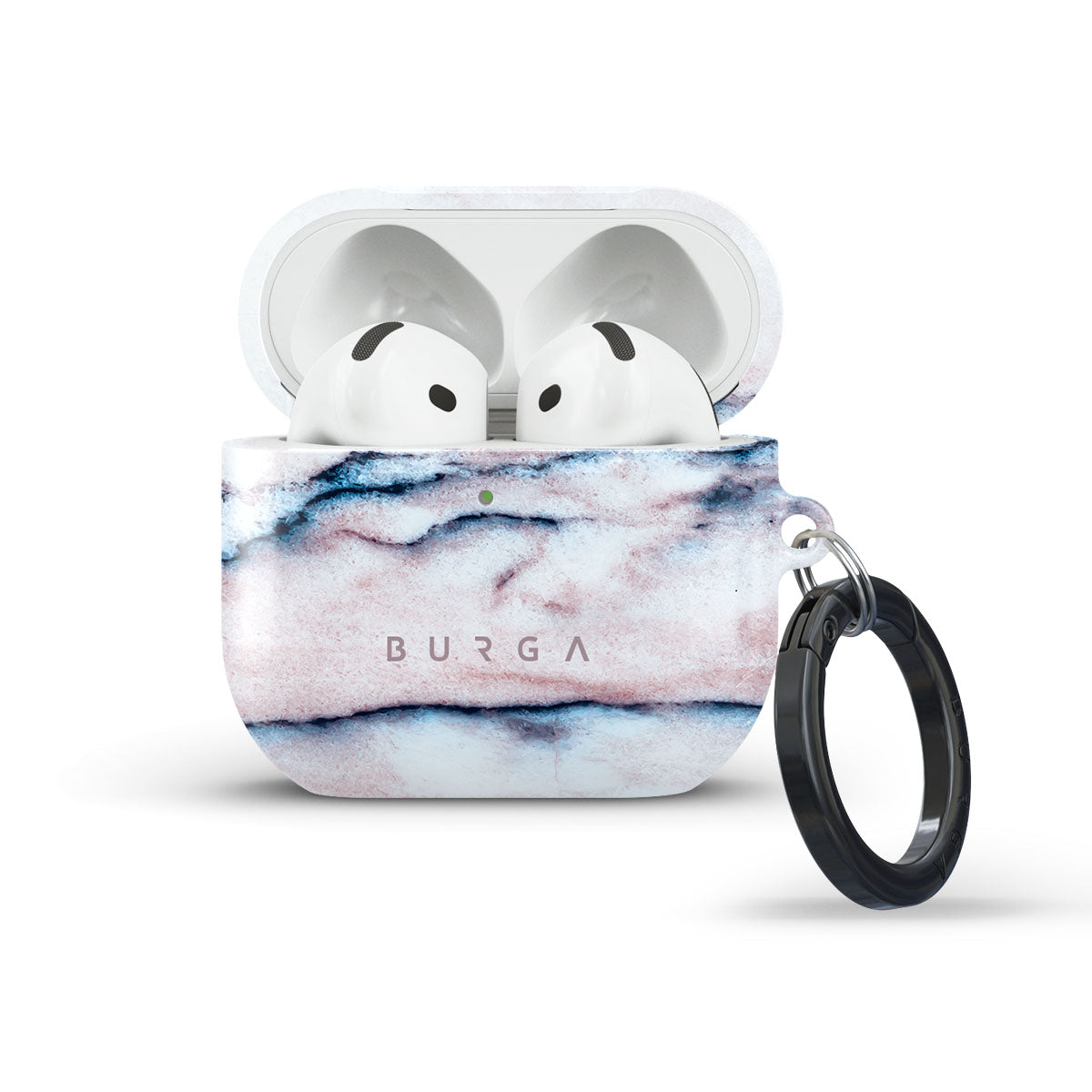 Soft, pastel accessory is a must, and our soft Bubble Gum Apple AirPods 4 case cover is just that. A minimalistic marble pattern with a pink gradient and deep blue swirls will add the needed touch of softness to every wardrobe while protecting the case from wear and tear. Our case fits perfectly snug around Apple AirPods 4 . “Like a glove!” one might say. And it won’t disrupt the wireless charging capabilities of the newer model. There’s even an LED light indicator to prove it (don’t worry, wired charging still works, too). When fitted, the BURGA case will protect the delicate Apple AirPods 4 case beneath it from scratches, bumps, and drops while remaining scratch-free itself. Our signature design pattern prints are High Quality, and will never peel or fade away- thanks to our unique printing technology. And finally, a handy carabiner is there to make your life easier and more convenient: just snap it around your keys or belt loop and tackle the day head-on. Your music is right there by your side when you need it.