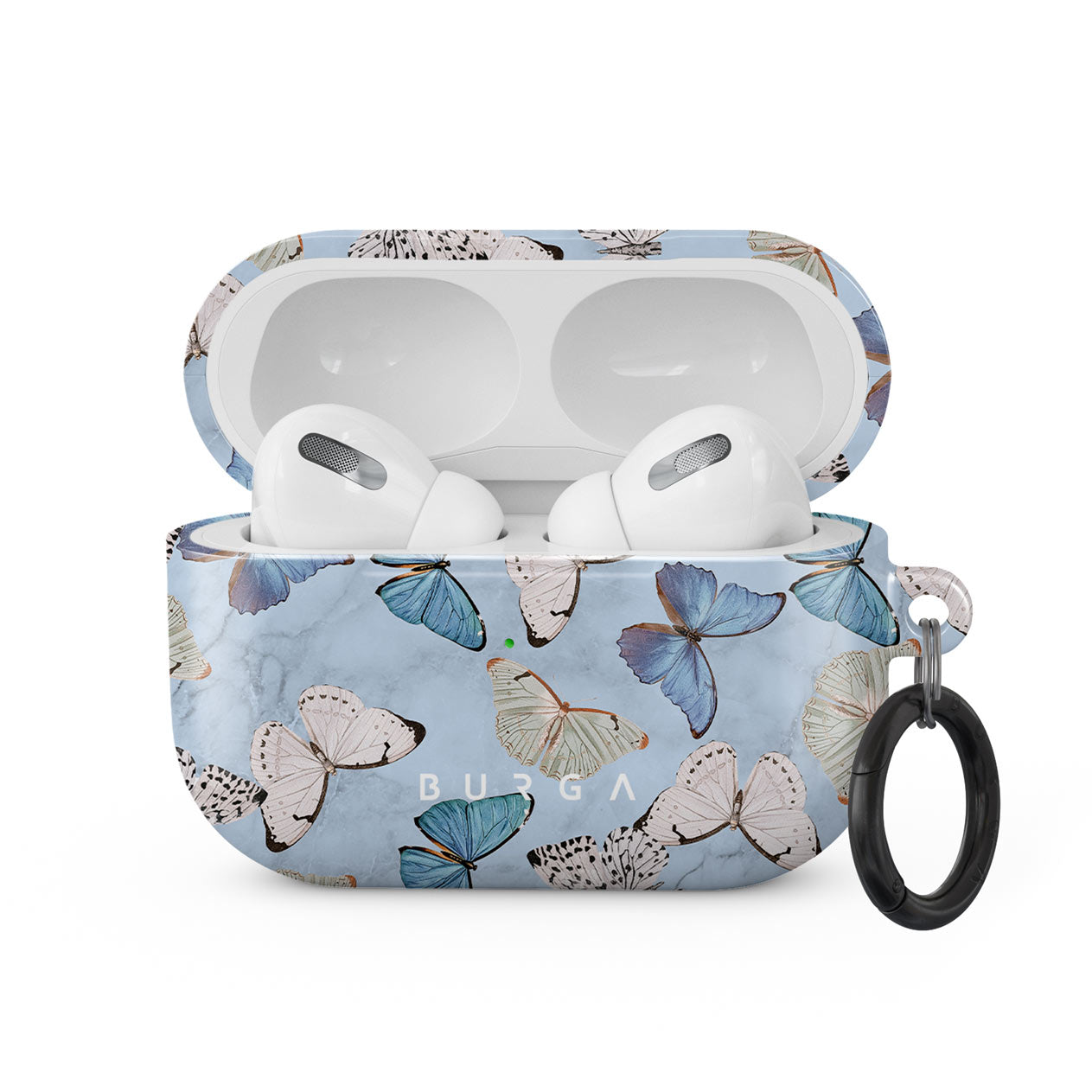 Our case fits perfectly snug around Apple Airpods Pro . “Like a glove!” one might say. And it won’t disrupt the wireless charging capabilities of the newer model. There’s even an LED light indicator to prove it (don’t worry, wired charging still works, too). When fitted, the BURGA case will protect the delicate Apple Airpods Pro case beneath it from scratches, bumps, and drops while remaining scratch-free itself. Our signature design pattern prints are High Quality, and will never peel or fade away- thanks to our unique printing technology. And finally, a handy carabiner is there to make your life easier and more convenient: just snap it around your keys or belt loop and tackle the day head-on. Your music is right there by your side when you need it.