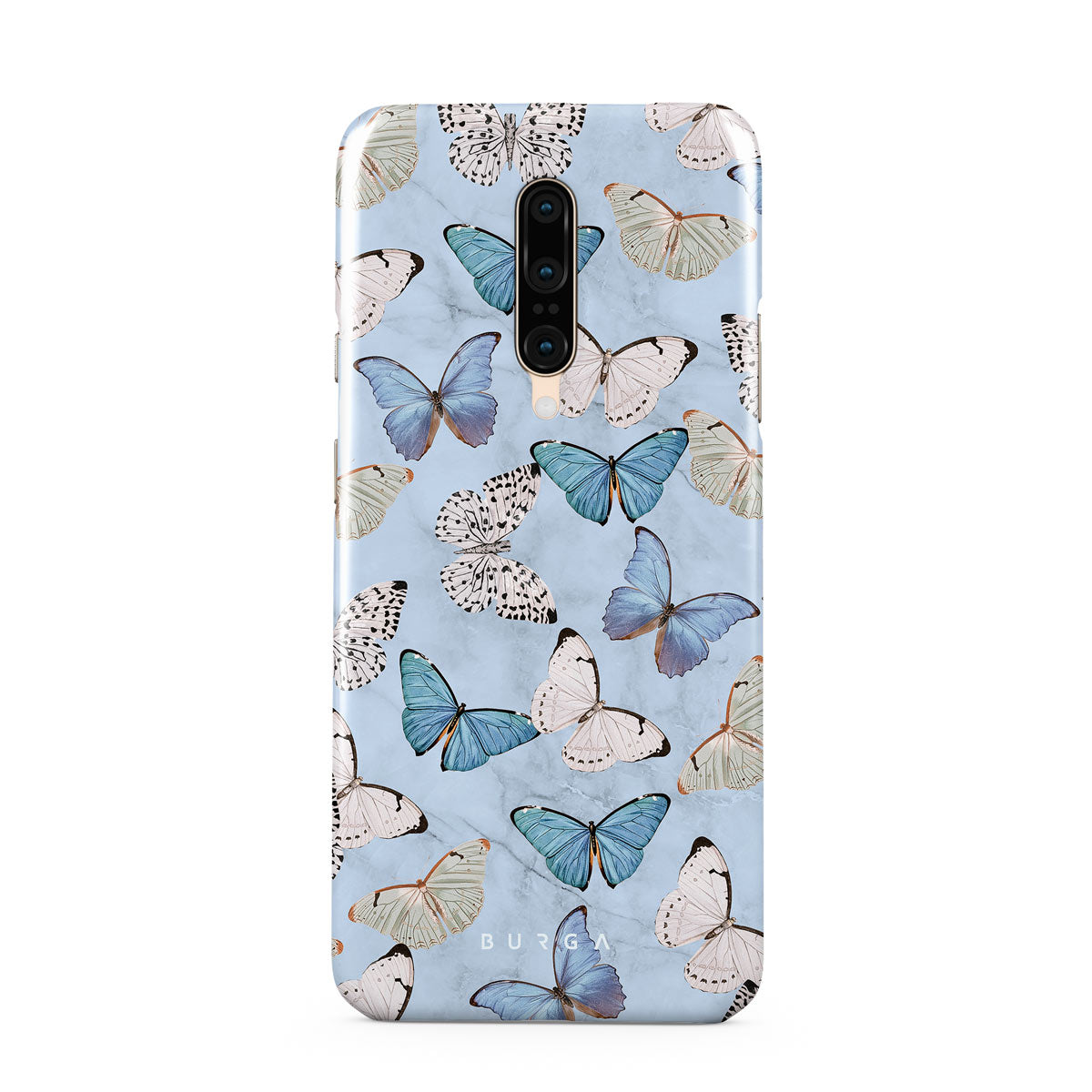 Pastel blue and a playful pattern of summery butterflies create a dreamy combination in our OnePlus 7 Pro / 7T Pro phone case. Carry the feeling of the butterflies in your stomach while protecting your phone from any dangers, as the hard-shell case will keep it sound and safe.