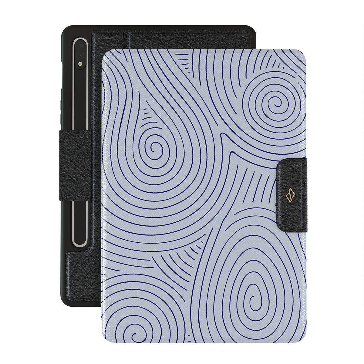 The hypnotizing topographic circle pattern of our Calm Sailing Samsung Galaxy Tab S8/S7 folio case is a must-have for those hectic summer days. Add some anchoring calmness to your day with the help of the soft blue color featured in this design! We can guarantee that this case will keep you calm not only by using color theory but also by keeping your Galaxy Tab safe and sound!