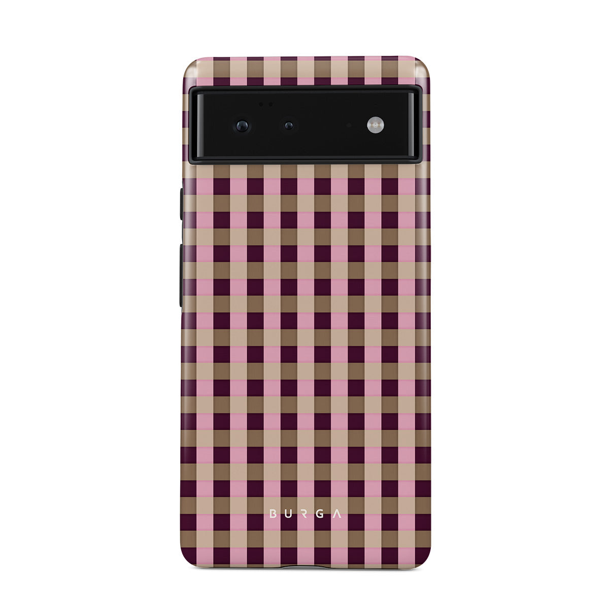 This design features: pink and burgundy plaid pattern, modern checkered style.