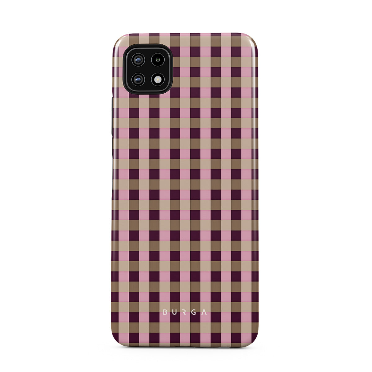 This design features: pink and burgundy plaid pattern, modern checkered style.