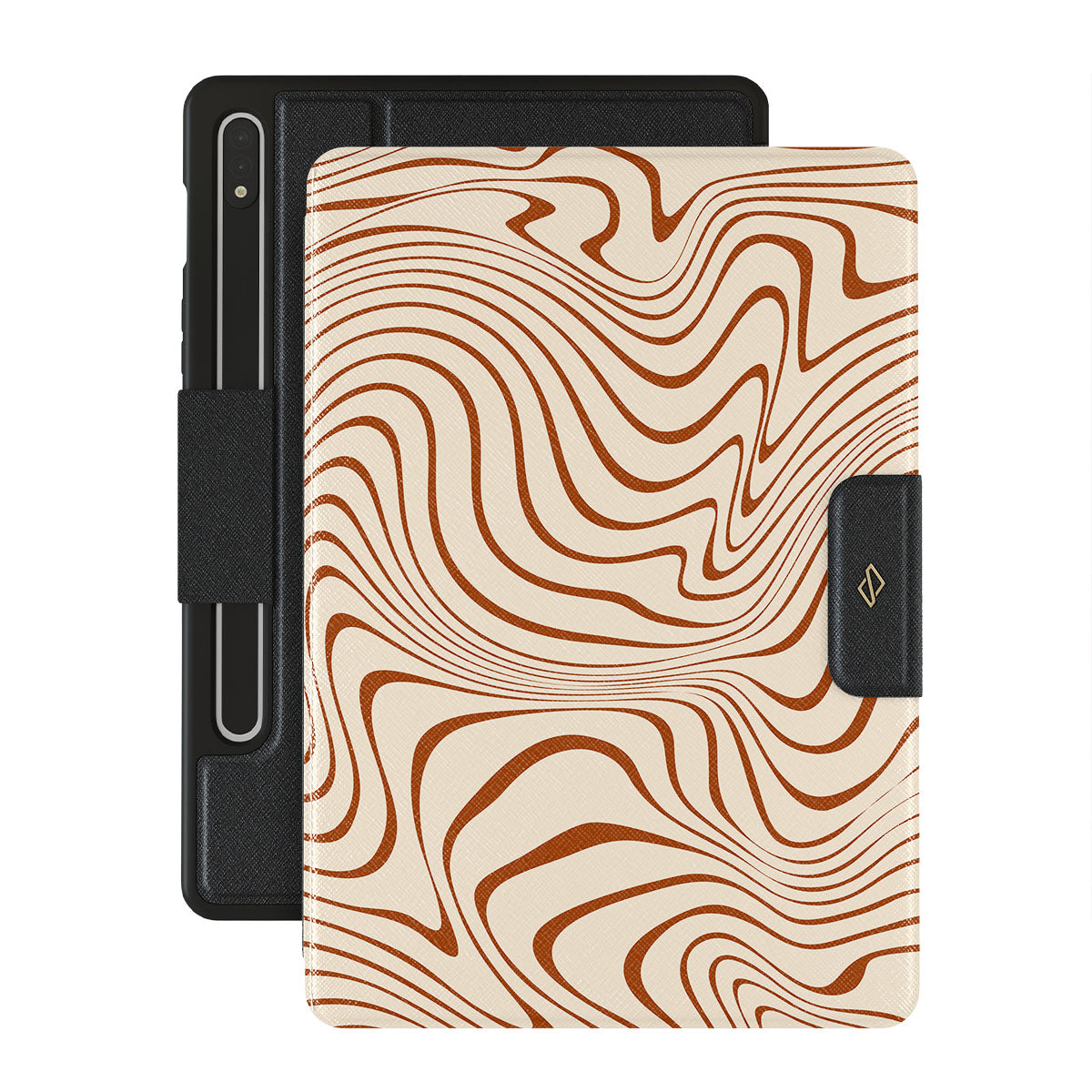 The title of our Déjà vu Samsung Galaxy Tab S9+ folio case design is no accident! This design's feeling can only be described as the Déjà vu itself. The crème color meets the warm brown in a mesmerizing waves pattern that will surely add a touch of old times charm to your device.