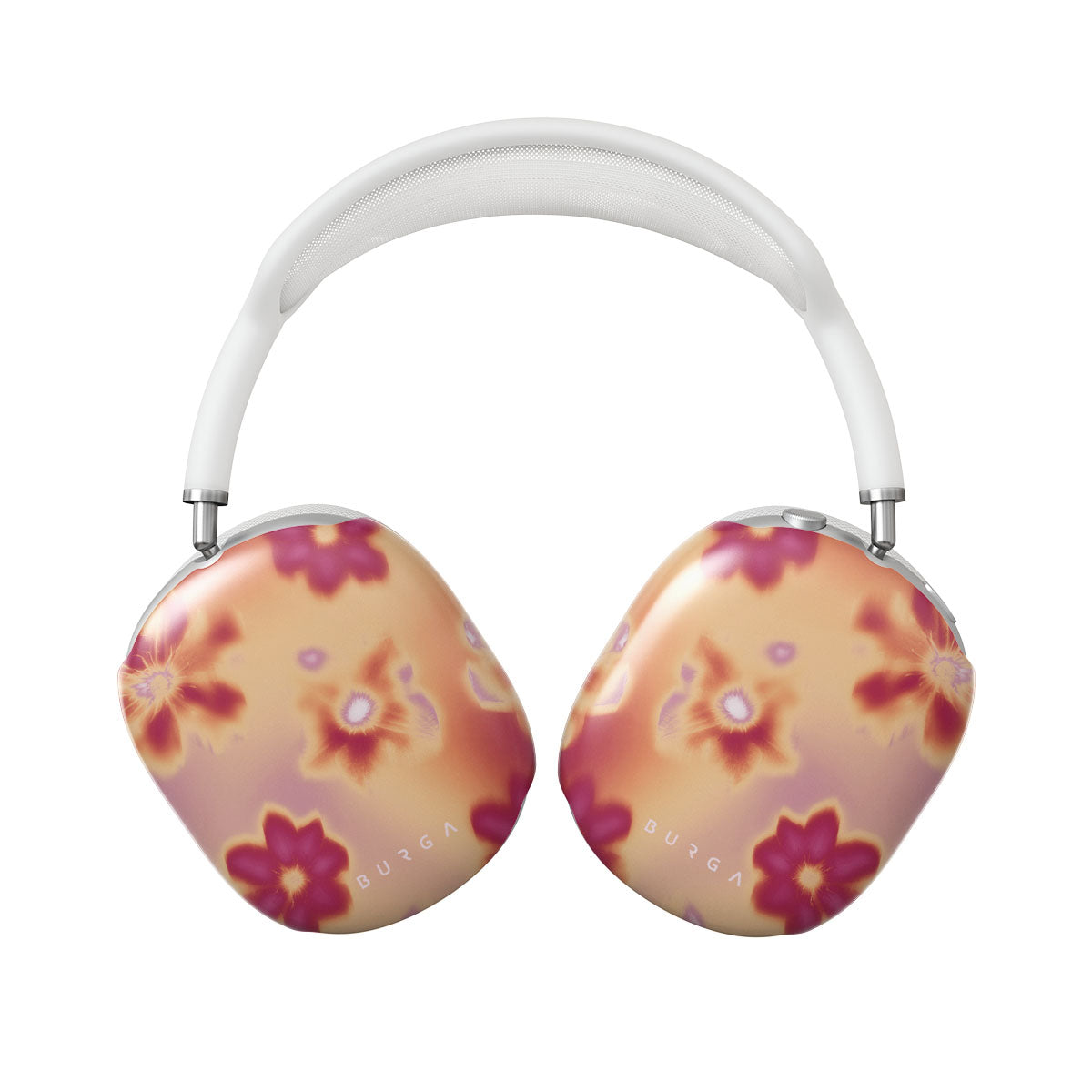 Get lost in the allure of our Divine Apple AirPods Max case cover design. Picture blossoms bathed in fiery hues of pink and orange, each seemingly charged with life's raw energy. Set against a canvas that radiates power and warmth, these flowers offer more than just beauty; they resonate with the essence that binds us all.