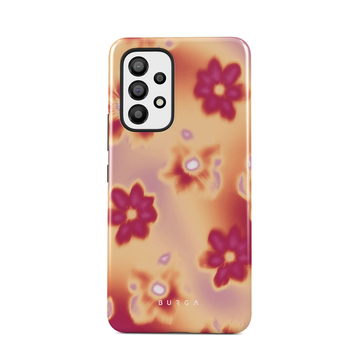 Get lost in the allure of our Divine Samsung Galaxy A33 phone case design. Picture blossoms bathed in fiery hues of pink and orange, each seemingly charged with life's raw energy. Set against a canvas that radiates power and warmth, these flowers offer more than just beauty; they resonate with the essence that binds us all.