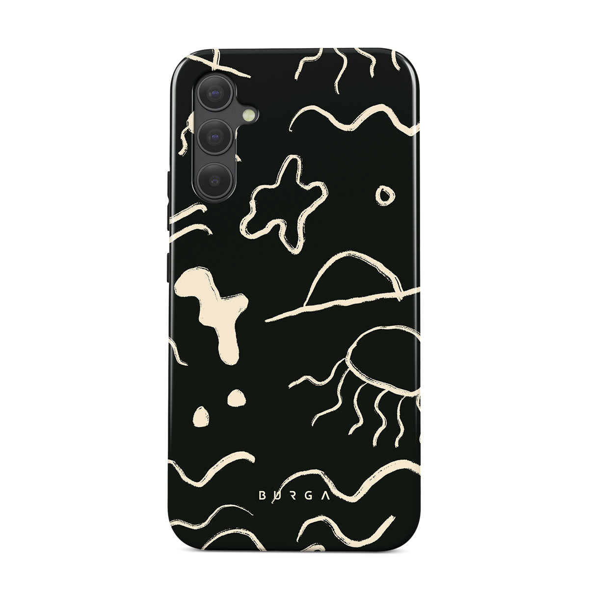 Our Eclipse Samsung Galaxy A34 design reflects the enigmatic beauty of the ocean during a solar eclipse. The dark hues and bright accents represent how the light dances on the water, while the waves and jellyfish capture the serene yet dynamic nature of the ocean.