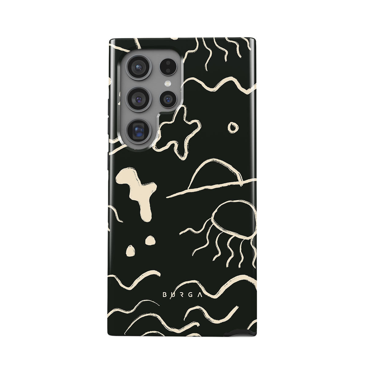 Our Eclipse Samsung Galaxy S24 Ultra design reflects the enigmatic beauty of the ocean during a solar eclipse. The dark hues and bright accents represent how the light dances on the water, while the waves and jellyfish capture the serene yet dynamic nature of the ocean.
