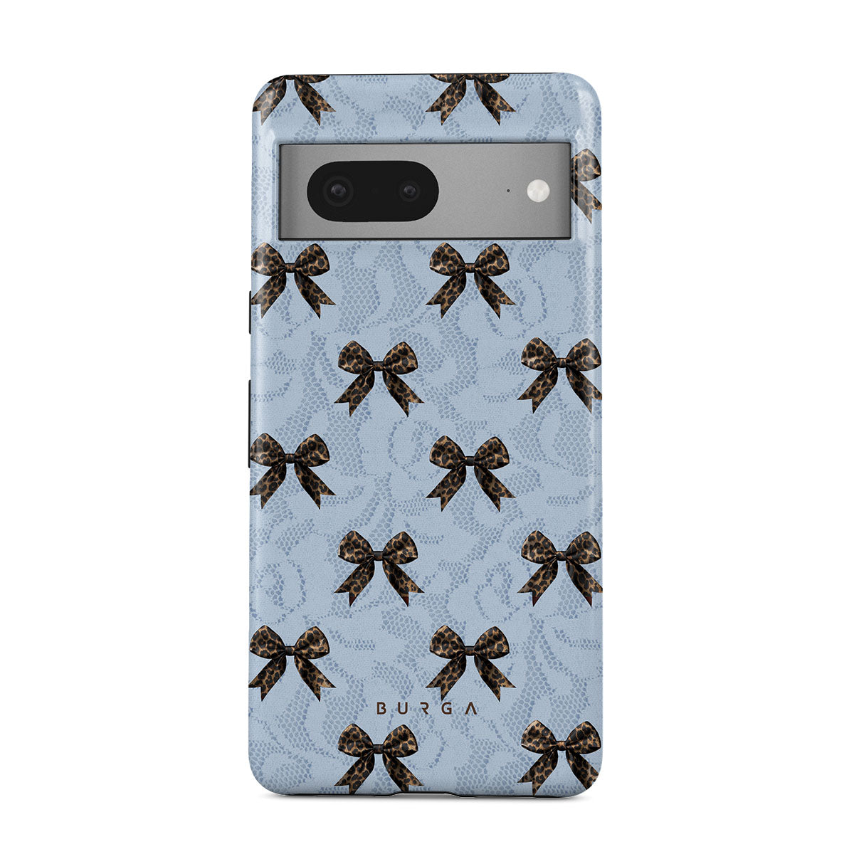 For those who command attention with subtle elegance, our Fashionista Google Pixel 7 phone case design is your go-to. A soft blue background, accented by dark grey bows and subtle lace patterns, exudes polished, effortless style. It's quiet confidence with a hint of charm.