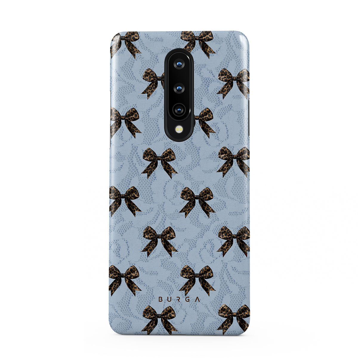 For those who command attention with subtle elegance, our Fashionista OnePlus 8 phone case design is your go-to. A soft blue background, accented by dark grey bows and subtle lace patterns, exudes polished, effortless style. It's quiet confidence with a hint of charm.