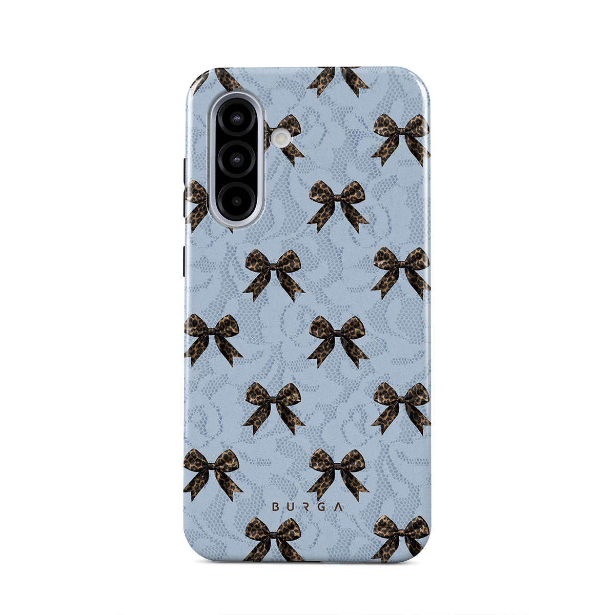 For those who command attention with subtle elegance, our Fashionista Samsung Galaxy A36 5G phone case design is your go-to. A soft blue background, accented by dark grey bows and subtle lace patterns, exudes polished, effortless style. It's quiet confidence with a hint of charm.