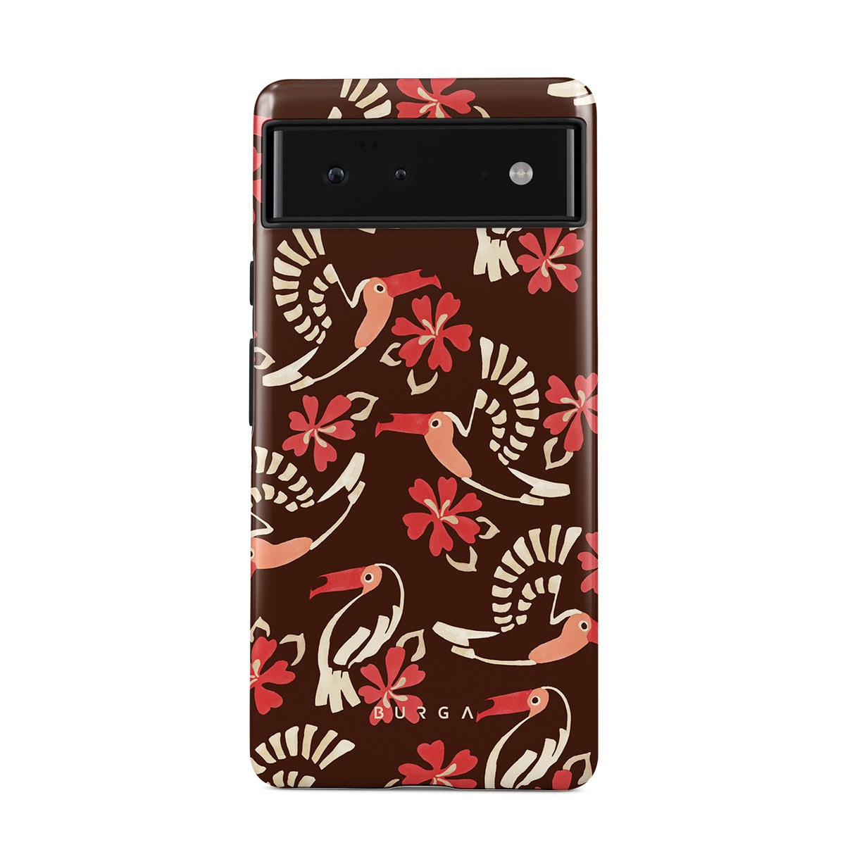 A jungle rave. Parrots, florals, bursts of red and cream—like someone threw a party in the rainforest and forgot to send you the invite. This Google Pixel 6 Pro phone case design is your RSVP.