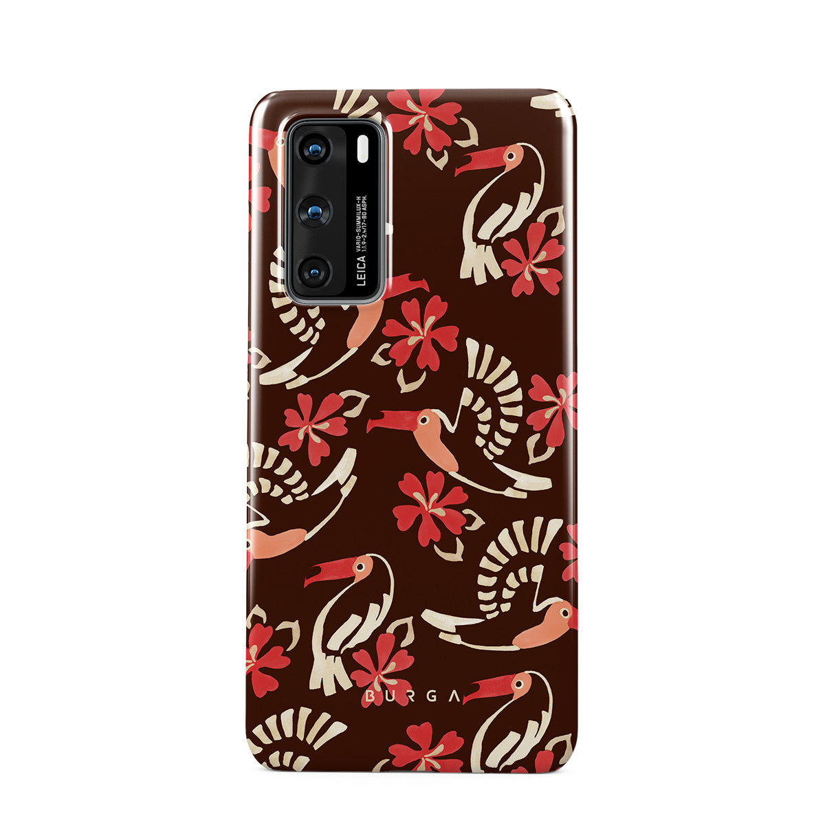 A jungle rave. Parrots, florals, bursts of red and cream—like someone threw a party in the rainforest and forgot to send you the invite. This Huawei P40 phone case design is your RSVP.