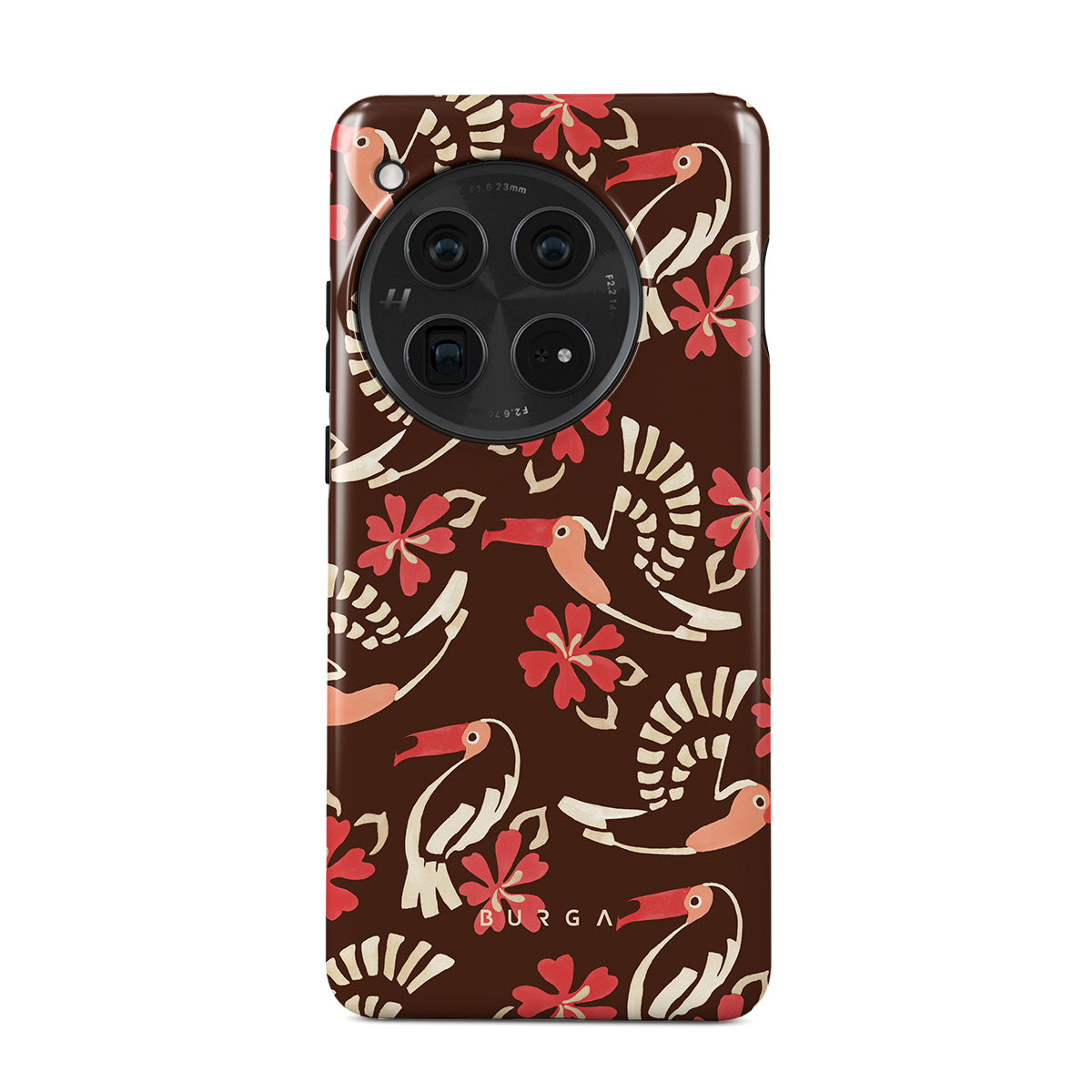 A jungle rave. Parrots, florals, bursts of red and cream—like someone threw a party in the rainforest and forgot to send you the invite. This OnePlus 12 phone case design is your RSVP.