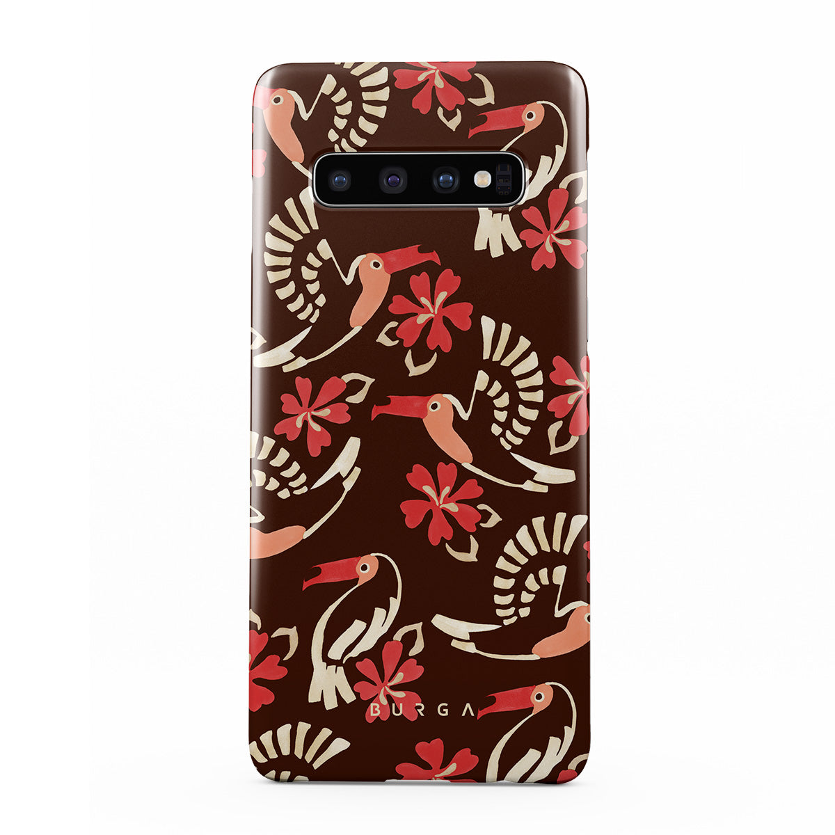 A jungle rave. Parrots, florals, bursts of red and cream—like someone threw a party in the rainforest and forgot to send you the invite. This Samsung Galaxy S10 Plus phone case design is your RSVP.