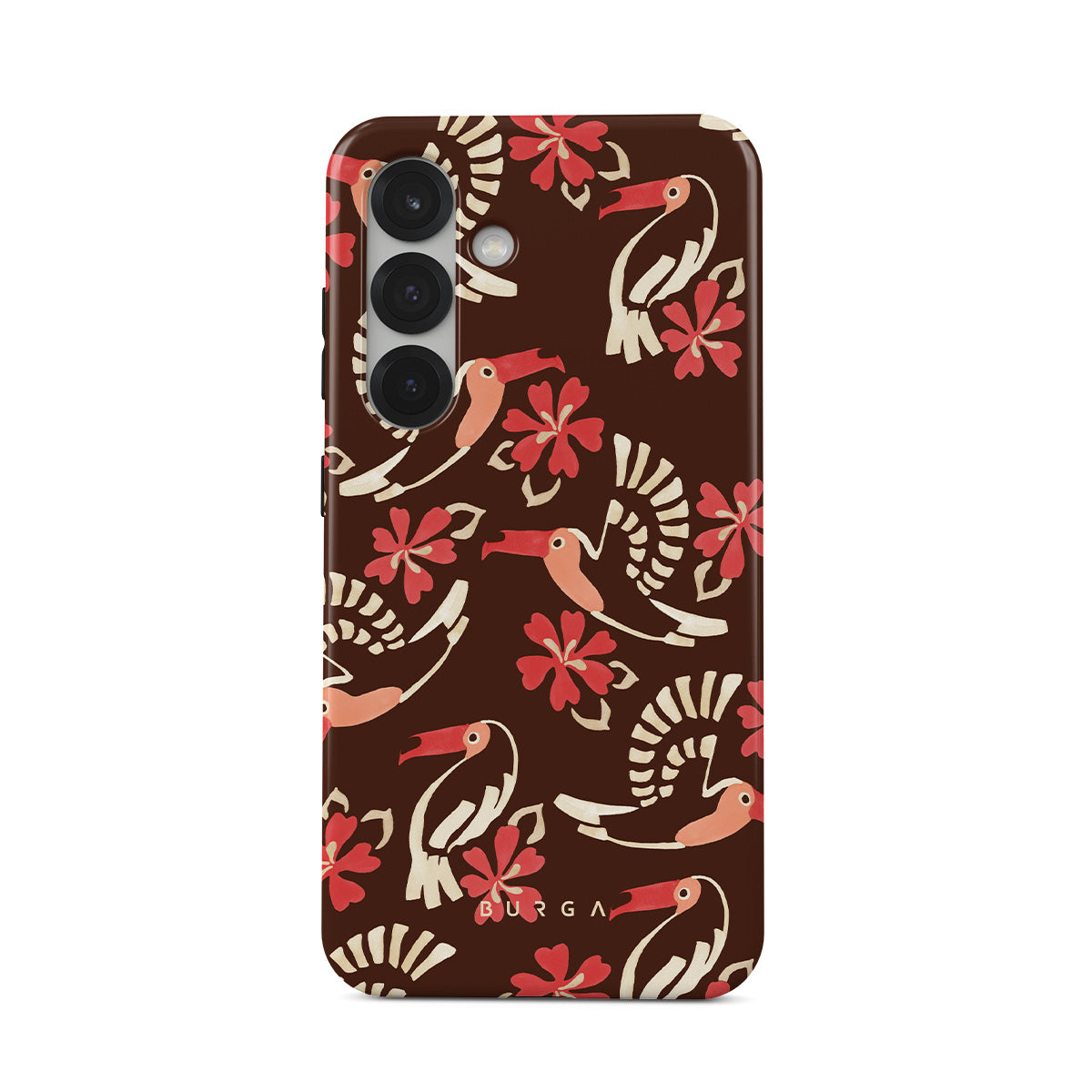 A jungle rave. Parrots, florals, bursts of red and cream—like someone threw a party in the rainforest and forgot to send you the invite. This Samsung Galaxy S25 Plus phone case design is your RSVP.