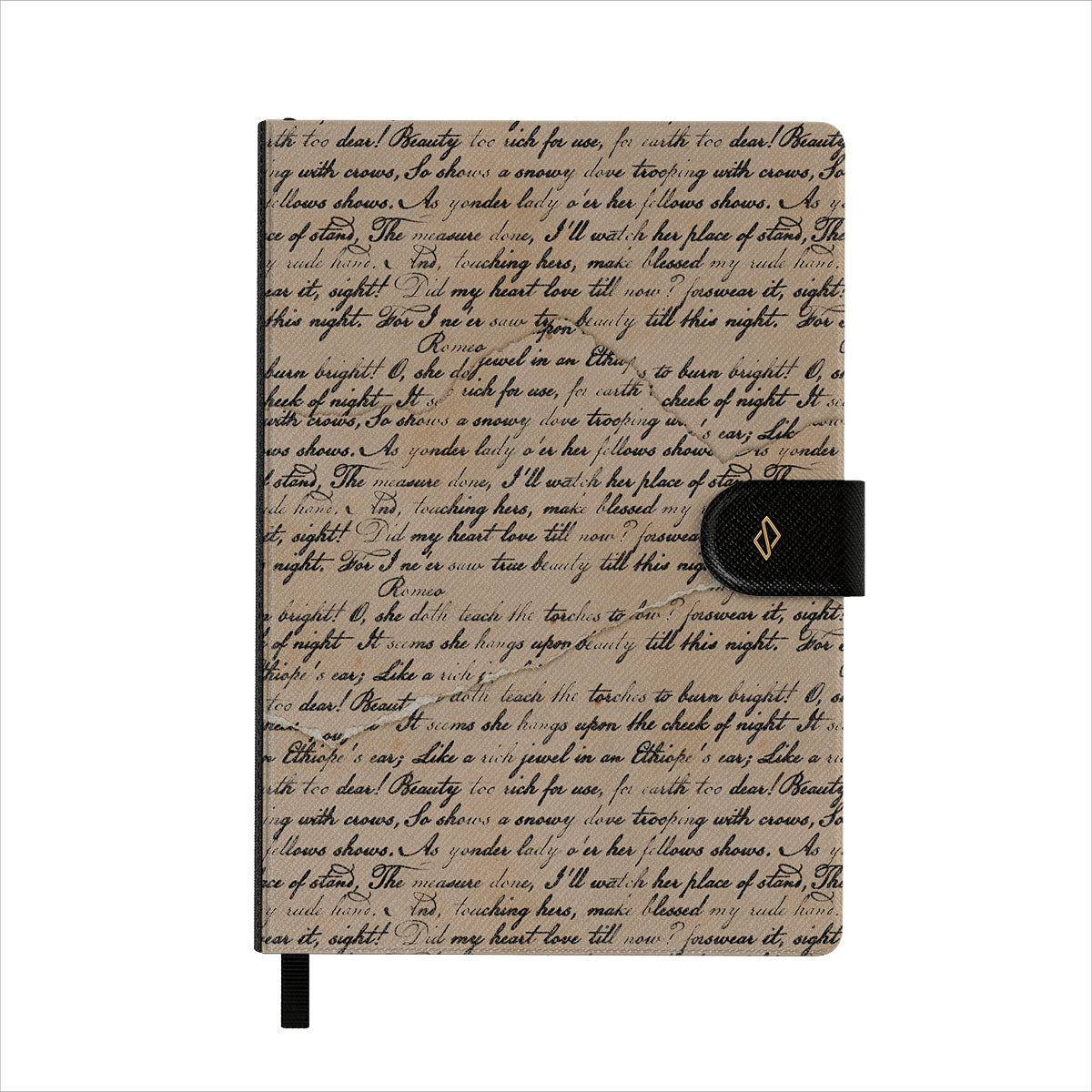 Features well-detailed BURGA patterns to a vegan faux leather front cover. Topped with an elegant black ribbon page marker.