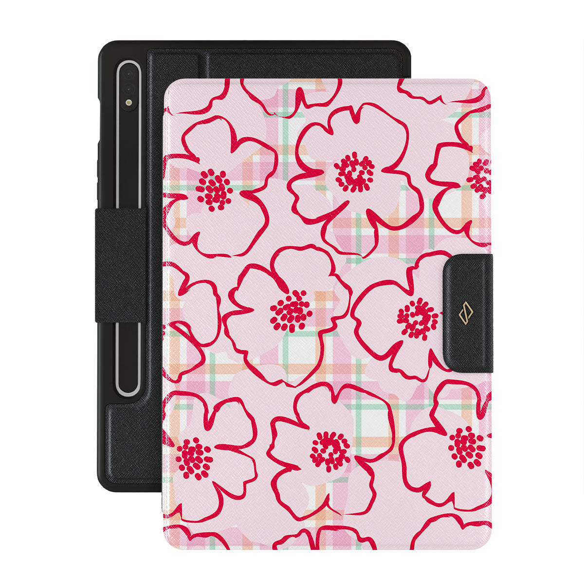 Pink flowers bloom from this Samsung Galaxy Tab S9+ FE folio case design—just like the ones you’d pick and put in your hair, simple and pretty, turning every walk through the garden into a fairy tale.