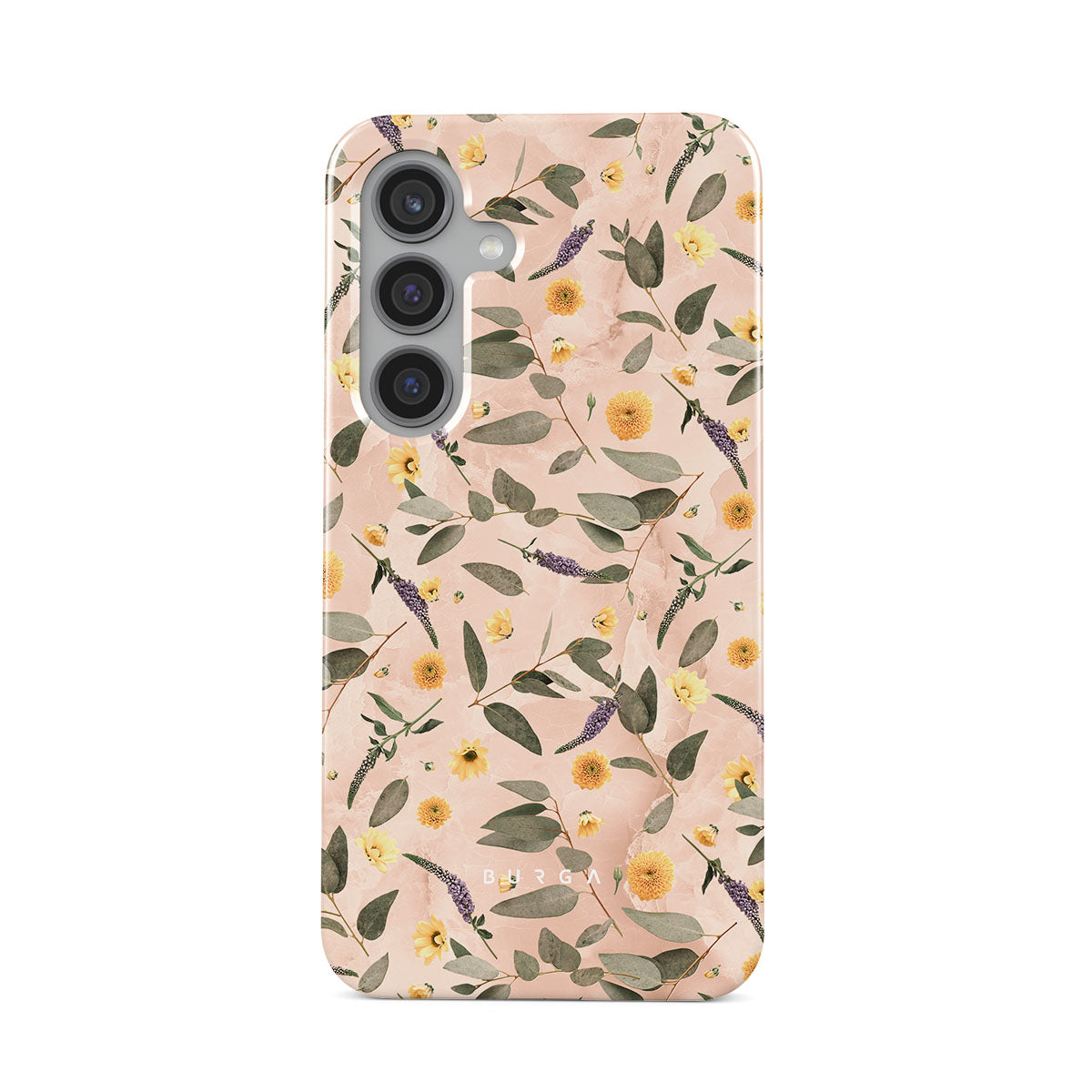 Sunday Brunch Samsung Galaxy S24 Plus phone case features a timeless flower pattern. The soft-toned case with a pop of lavender and yellow colors will add a splash of energy to your style while protecting your phone from dangerous falls.