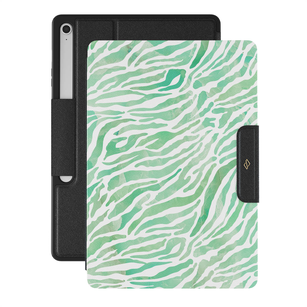Our Free Spirit Samsung Galaxy Tab S10+ FE folio case features an exotic zebra pattern in varying shades of green. Keep your spirits up, as there is no need to worry about your Galaxy Tab, as this trendy case is not only pretty but offers the heavy-duty protection that your cellGalaxy Tab requires.