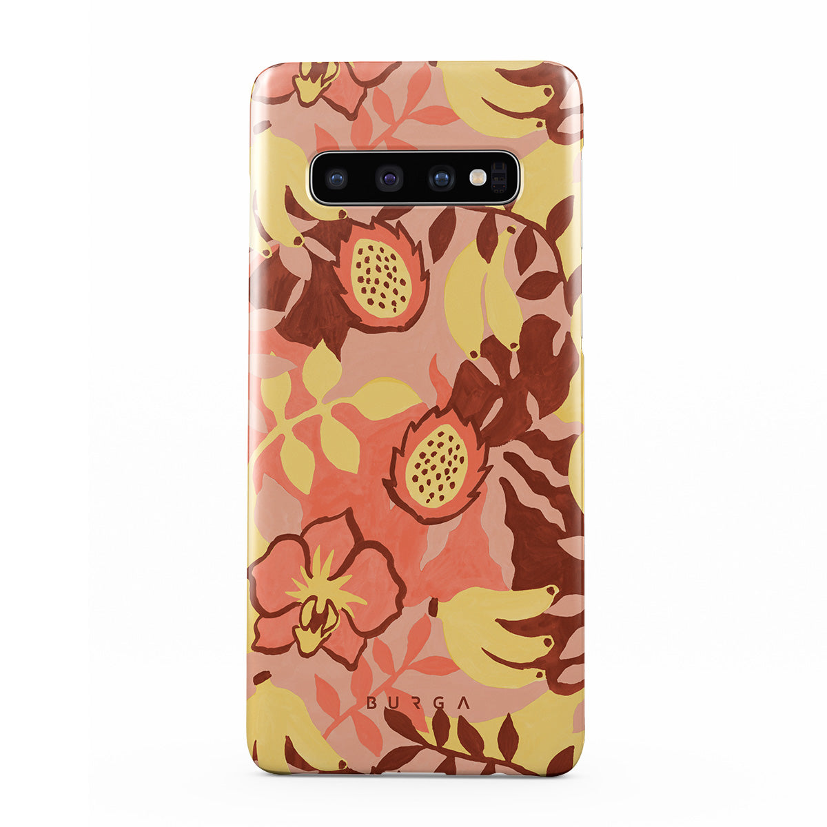 Half still life, half daydream. Fruit that doesn’t know it’s art, floating in a cloud of warm pink. This Samsung Galaxy S10 Plus phone case design is giving: “I only eat mangoes in bed.”