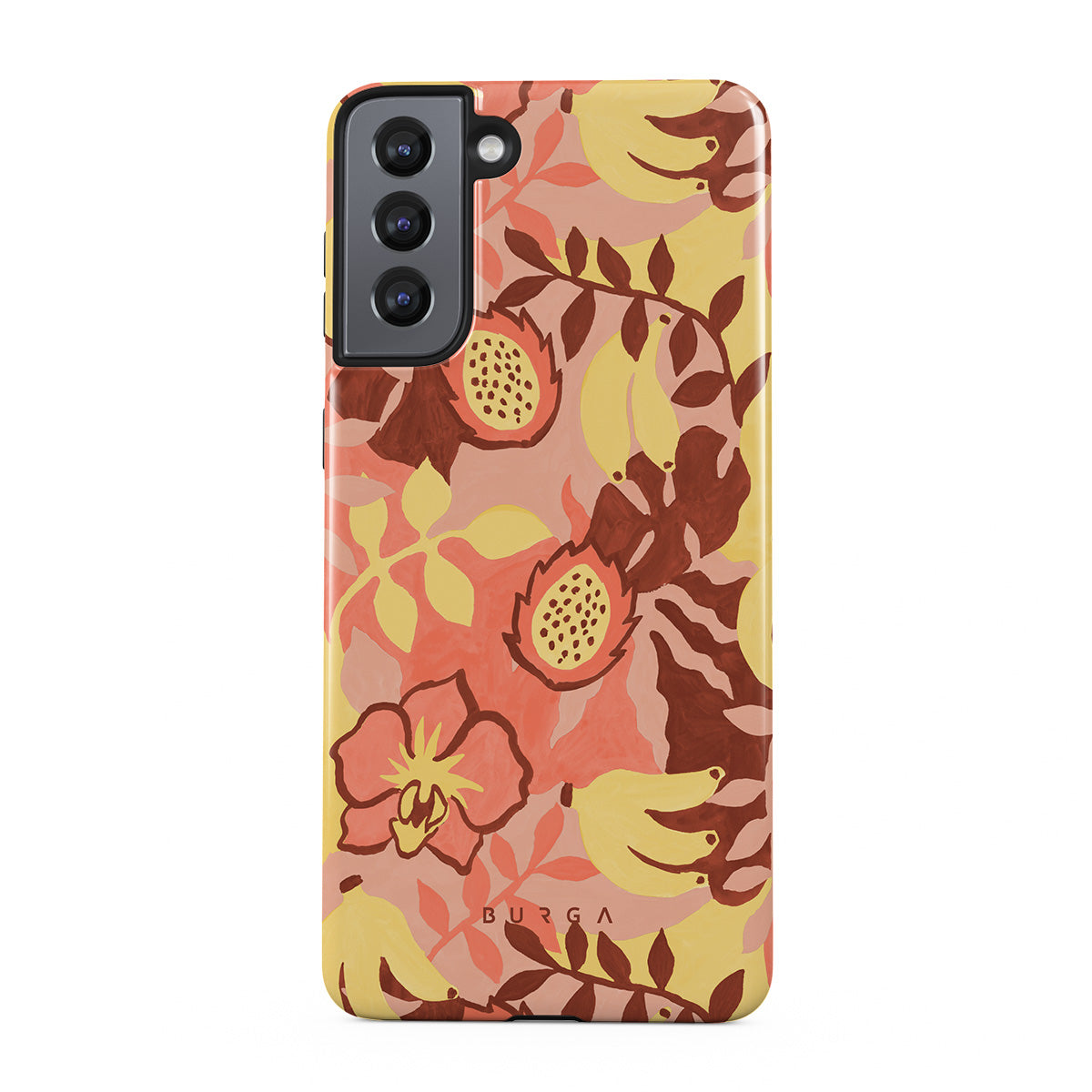 Half still life, half daydream. Fruit that doesn’t know it’s art, floating in a cloud of warm pink. This Samsung Galaxy S21 phone case design is giving: “I only eat mangoes in bed.”