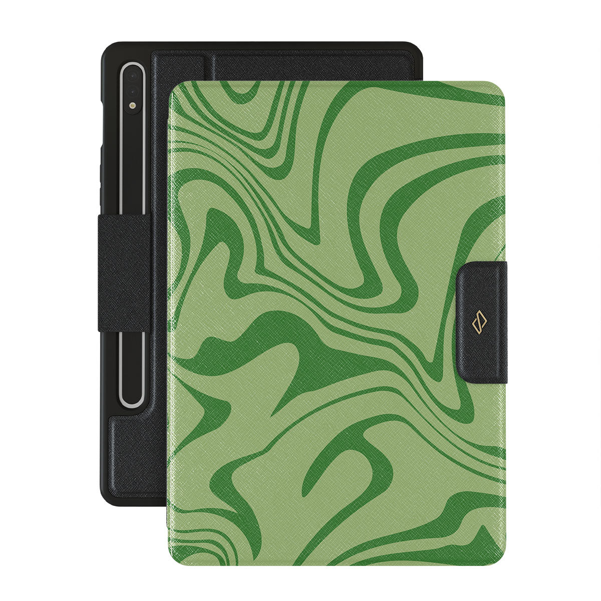 Our Funky Sensation Samsung Galaxy Tab S9 FE folio case design is a perfect abstract piece for those who love soft pastel colors but still want to stand out. A sharper take on the liquid swirl design in green shades will accompany your device perfectly.