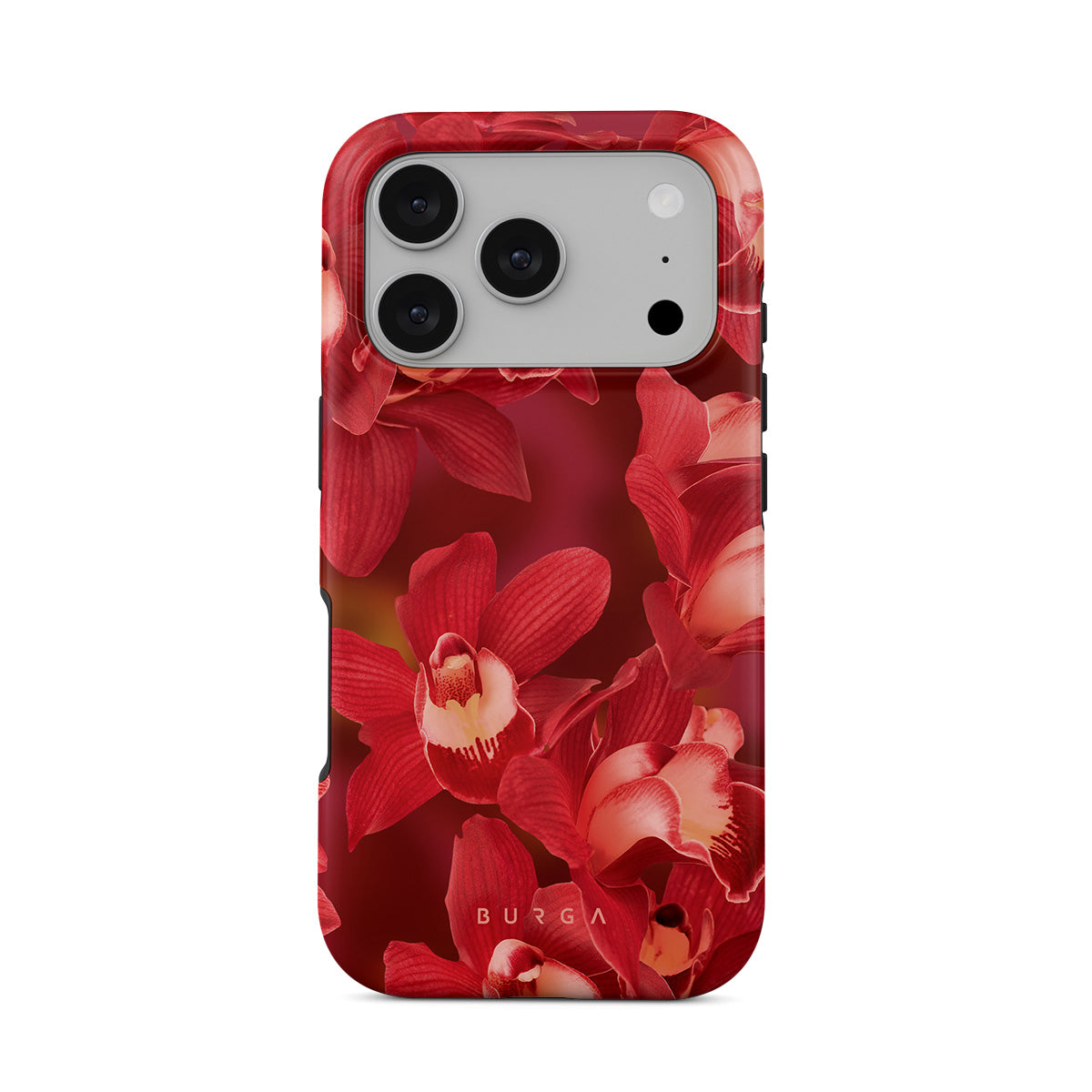 The deep red orchids emerge with a passionate intensity, evoking the fervor and depth of emotions that come with fully experiencing life. They are a vibrant call to embrace every heartbeat, to live deeply and love boldly. Discover the Goddess Energy iPhone 17 Pro phone case design.