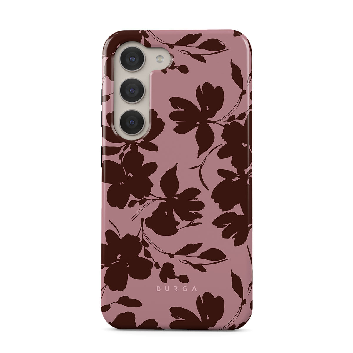 Quietly bold, our Gossip Samsung Galaxy S23 Plus phone case design speaks volumes in subtlety. A soft rosé background, layered with deep red-brown floral accents, gives off a refined, almost mysterious vibe. It's for those who let the details do the talking.