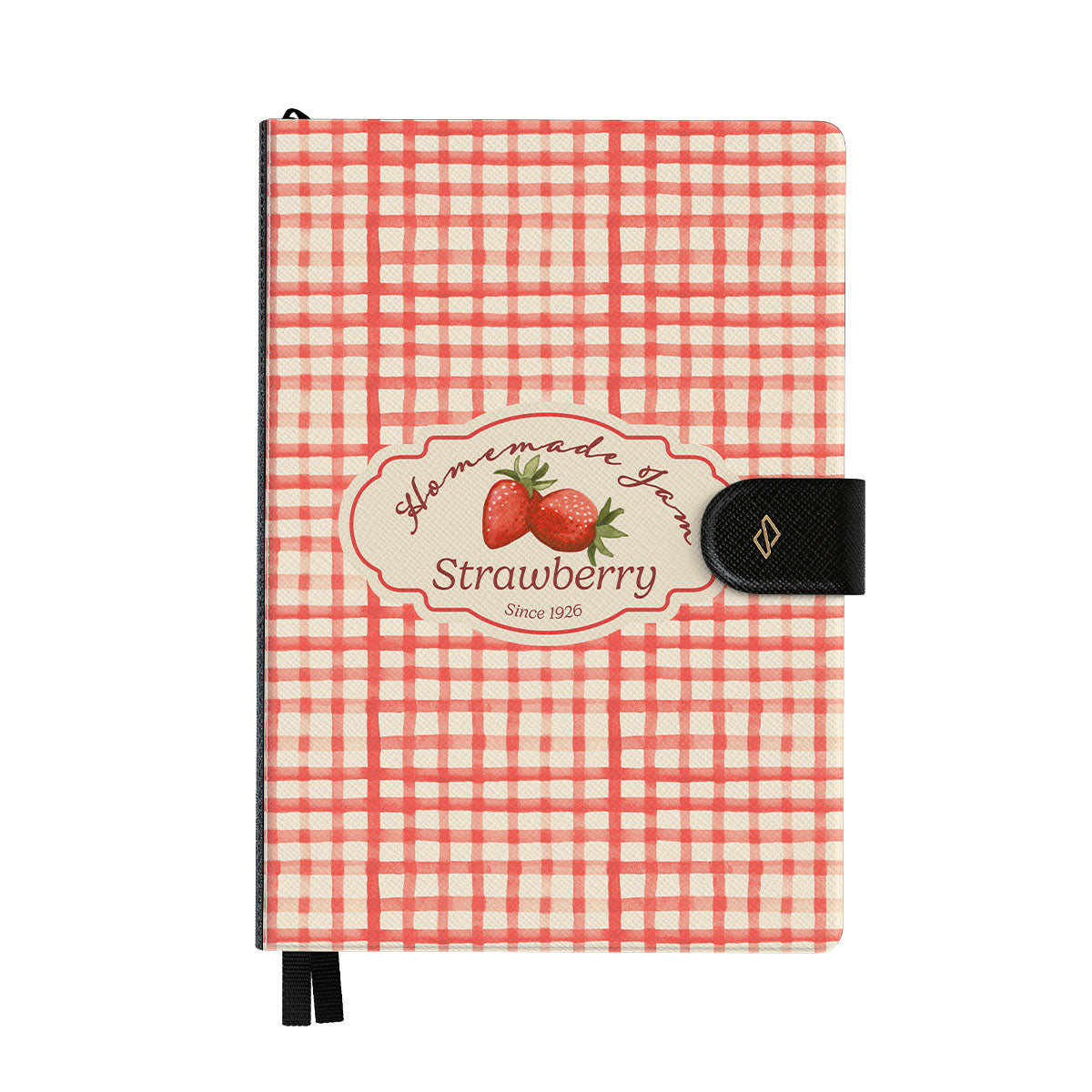 This design features: strawberries, gingham checks, jam label illustrations, vintage food graphic