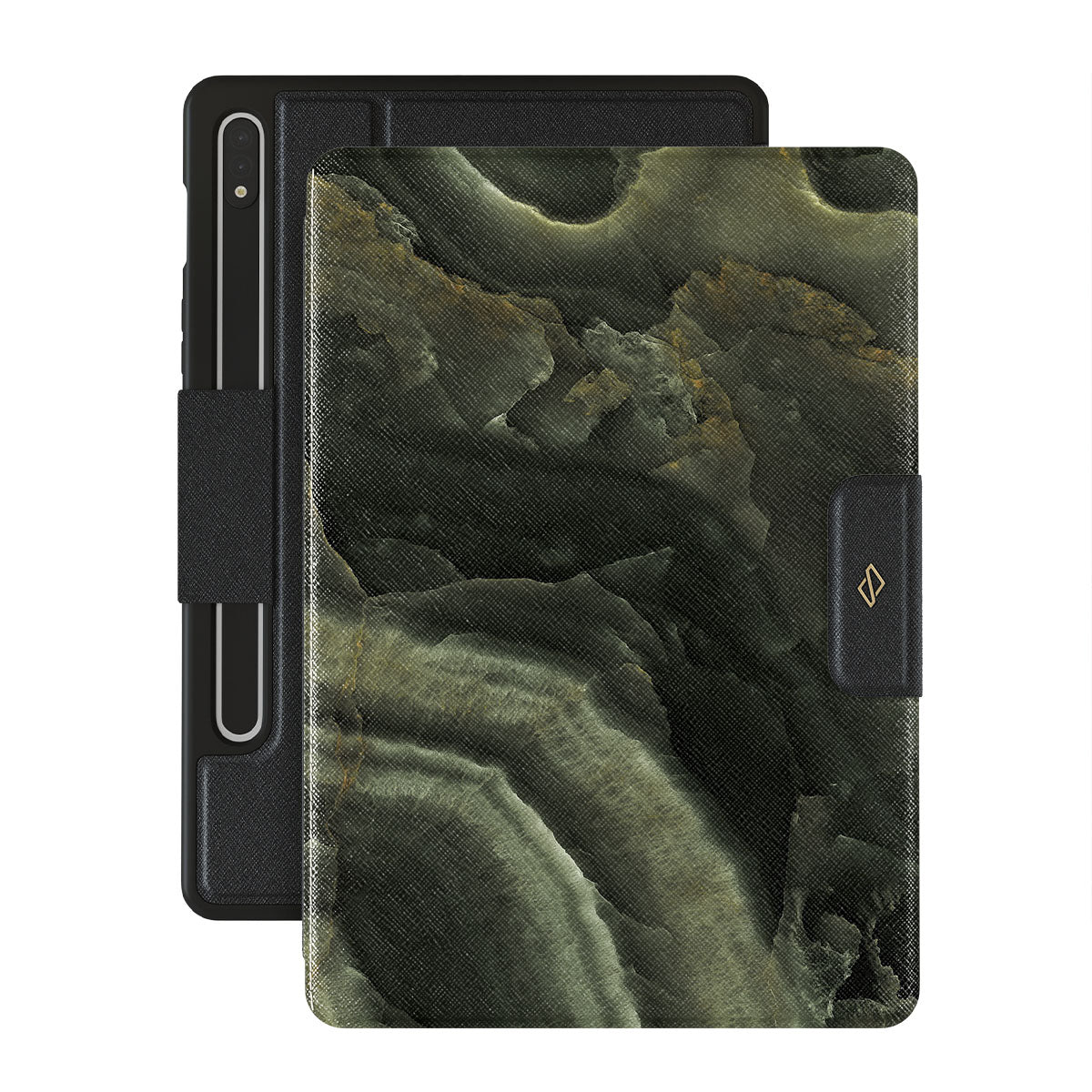 Carry the mystery of unexplored land found in an ominous misty forest with a green marble Samsung Galaxy Tab S10+ folio case inspired by it. The case combines the popular marble trend with heavy-duty protection becoming a unique companion to your device.