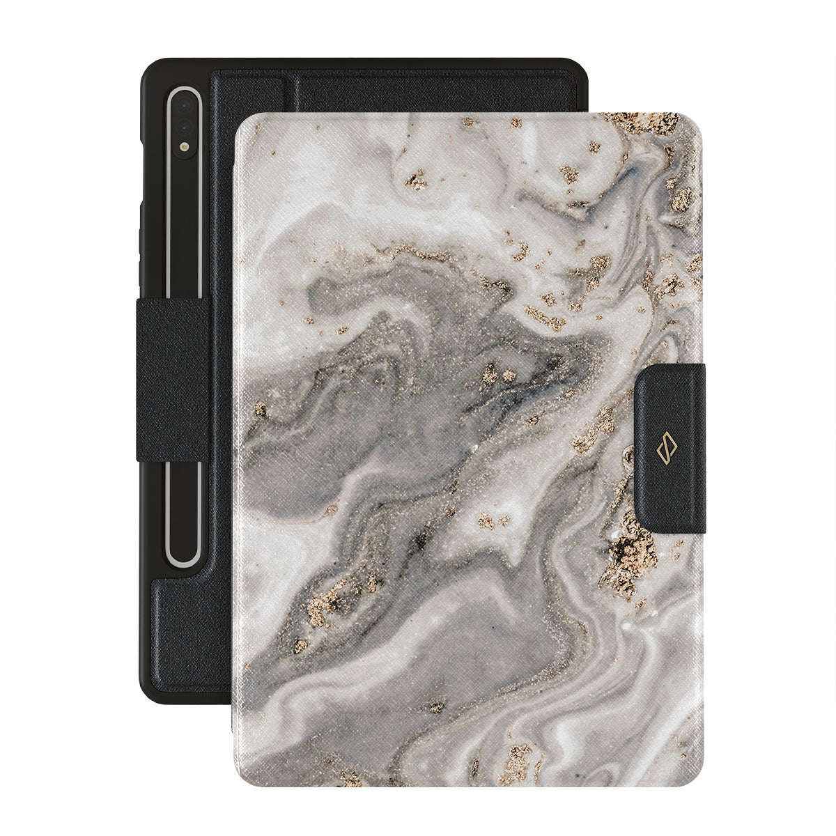 The wind outside is playing his songs. Some fear, some love, and some simply enjoy. But do not be afraid, with our grey marble Samsung Galaxy Tab S9+ FE folio case inspired by a beautiful snowstorm, you can have the pretty part of it without any coldness. And as the case offers heavy-duty protection, your Galaxy Tab will also be safe and sound!