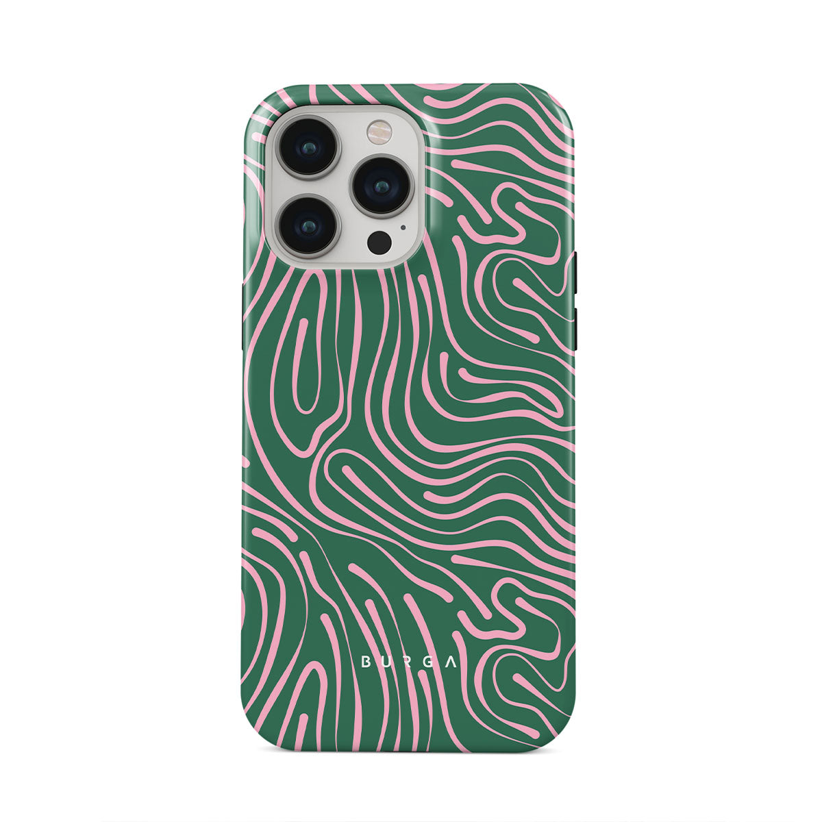 Fresh and mesmerizing, our Hawaiian Breeze iPhone 13 Pro phone case design combines a pastel pink wavy pattern with a crisp green background creating a refreshing look. The abstract pattern will indeed become a star in your accessorizing game, while the phone case will keep your device protected at all times!