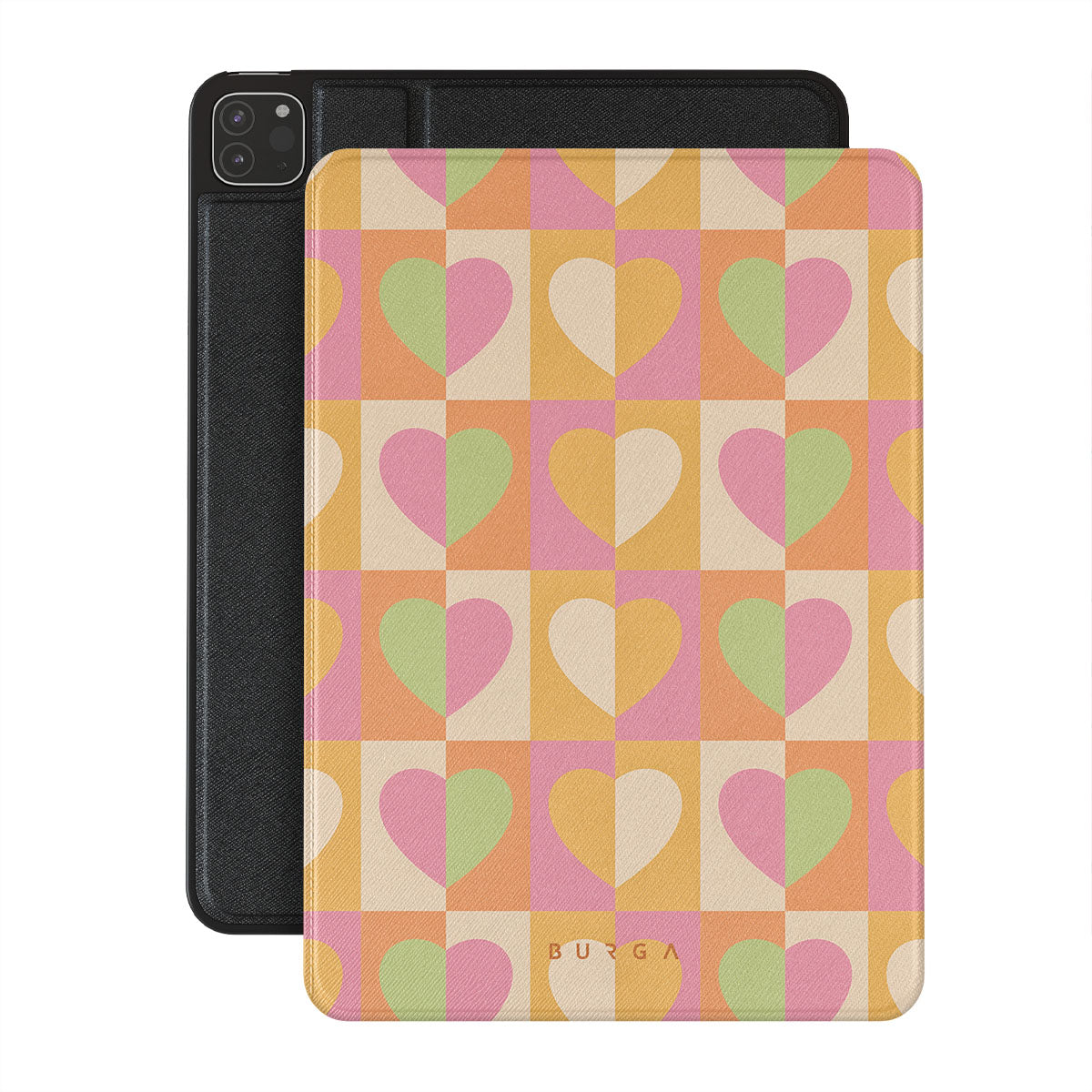 Beautifully geometrical and lovable Summer Love {iPad Model} iPad Pro 12.9 (4th/3rd Gen) folio case combines a soft pastel color scheme with a playful square heart pattern. Adding a touch of love to your style was never easier! Keep your iPad as safe as you keep your heart in a cheeky checkered protective iPad case!