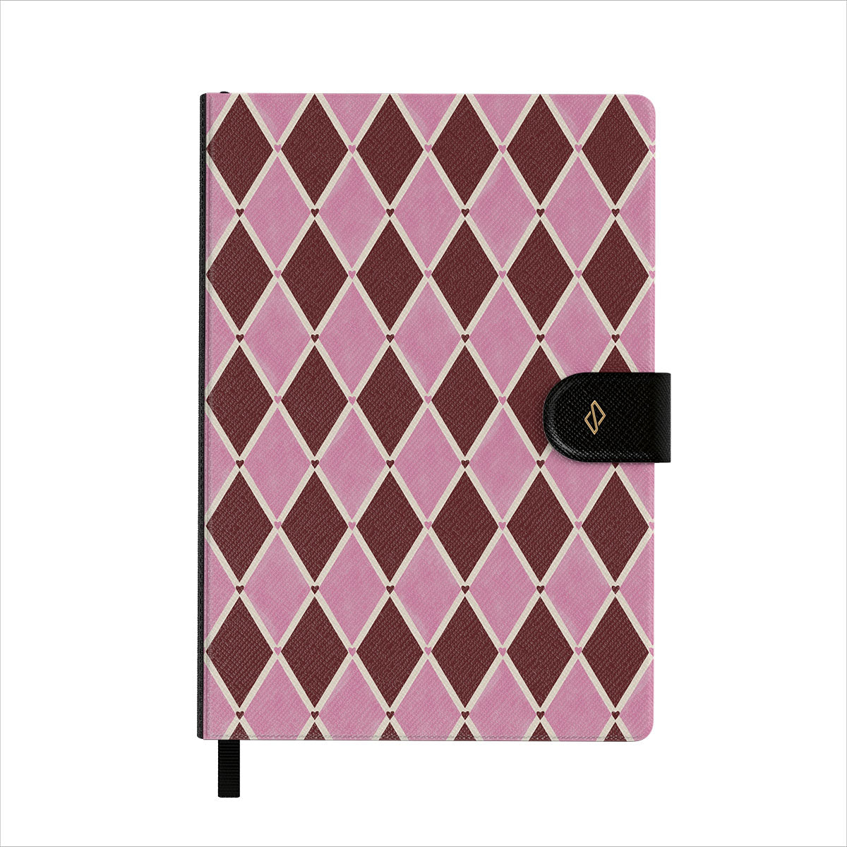 Features well-detailed BURGA patterns to a vegan faux leather front cover. Topped with an elegant black ribbon page marker.