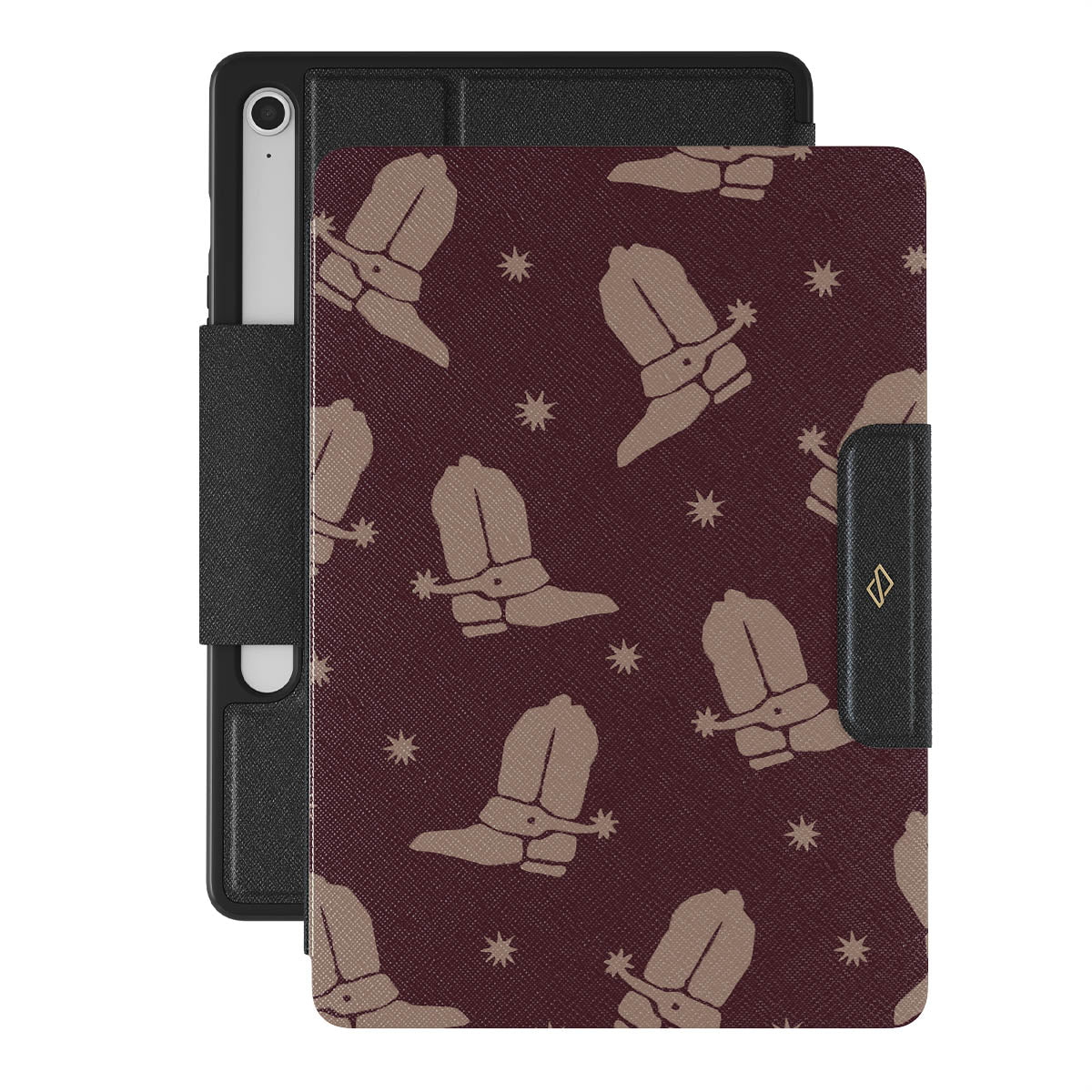 Say Howdy to this charming Samsung Galaxy Tab S10 FE folio case design. Cowboy boots and stars dance across a deep brown background, celebrating the essence of western life. Perfect for those who embrace their free spirit.